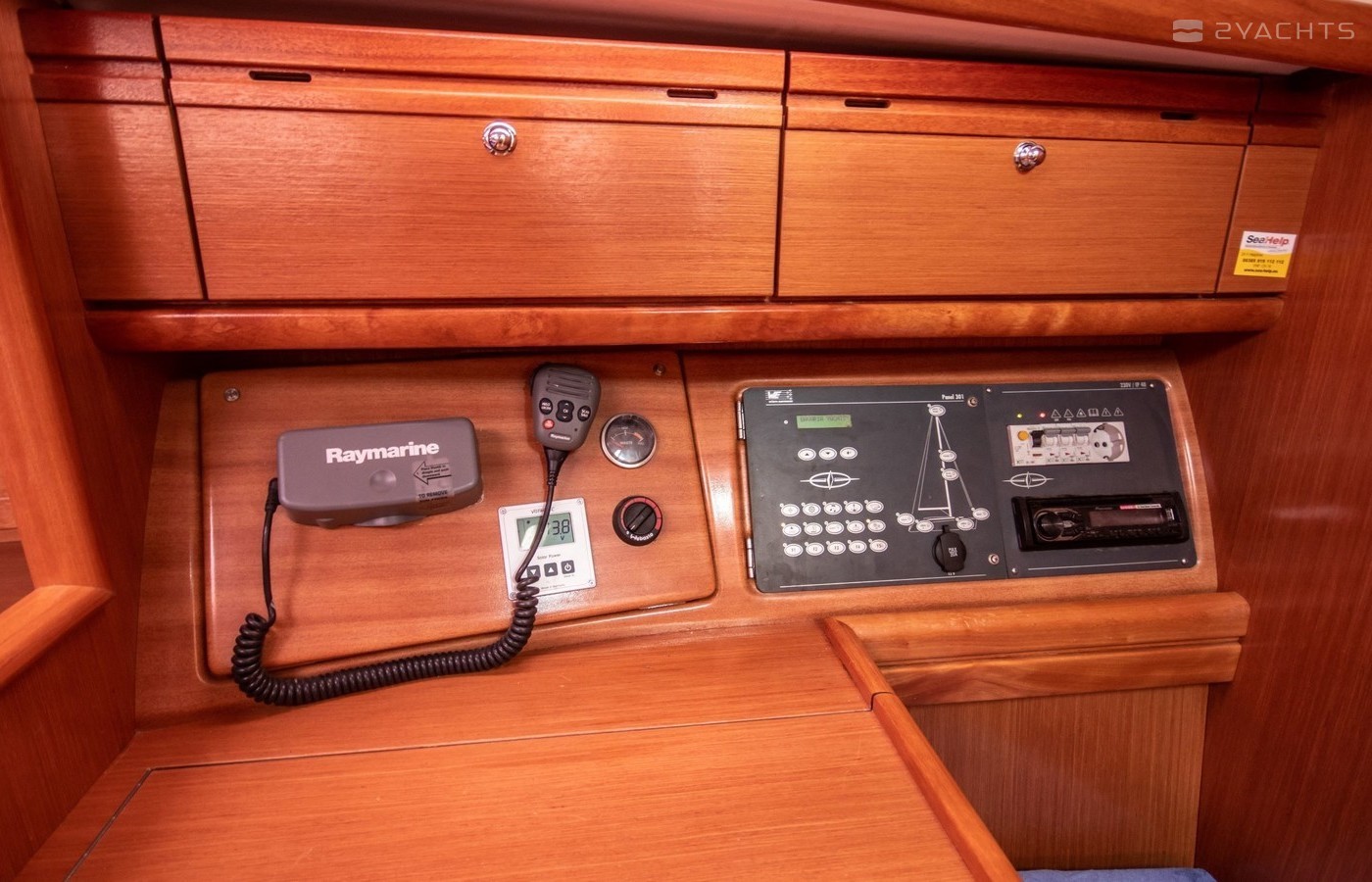 Boat equipment features rolling mainsail, bimini and bathing platform. It also boasts a heating, an audio system and inside speakers. The fully-equipped galley includes an oven, cooker, sink and kitchen utensils.