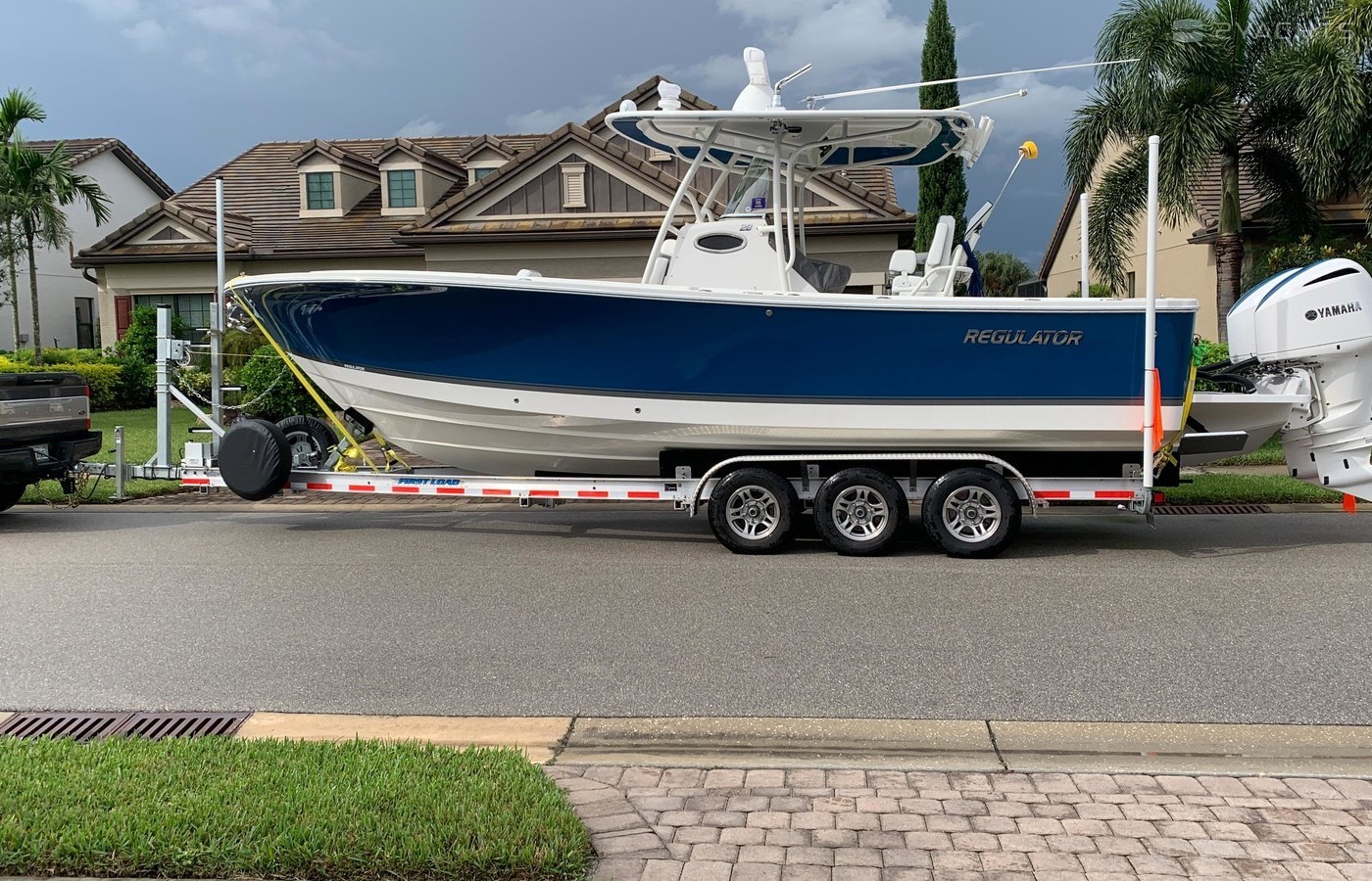 Quick details:2019 28FSLaguna Blue with white 300 Yamahas with blue mohawks, approx 270 hours and just serviced. Warranties through 11/20/24.Garmin 7616 x2 displays with Grid 20 controlFLIR MD625 infrared cameraUpgraded LED Stryker remote spotlightSirius XM Weather receiver4kw open array radarAutopilotAirmar B275LM thruhull and Garmin GT51-TM side scan transducersFell MOB wireless kill switchForward filler table with cushionsForward seating with complete cushions and backrestsForward sun shade, removable with carbon fiber polesRefrigerated transom fish boxBilge dual bucket holderRemote engine flush x 2Full spray curtainsBrand new unused 20' Taco carbon fiber outriggersLED undergunnel lightingUnderwater lightingRhodan 96" trolling motor with 50ah Ionics lithium batteryFull cover to waterline (use on lift or trailer). Goes on/off in 5 min.2 sets of props: SWSII 21p and Rev4 19p four blades2020 First Load trailer from Rocket International in Ft Myers. Triple axle, EoH brakes, stainless brake upgrade, bow ladder, bow catcher.