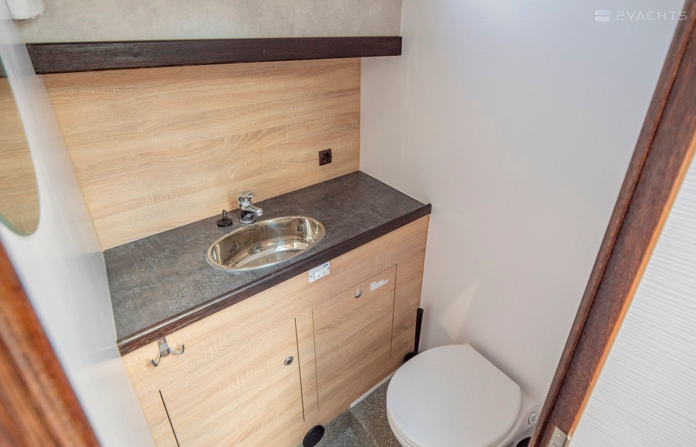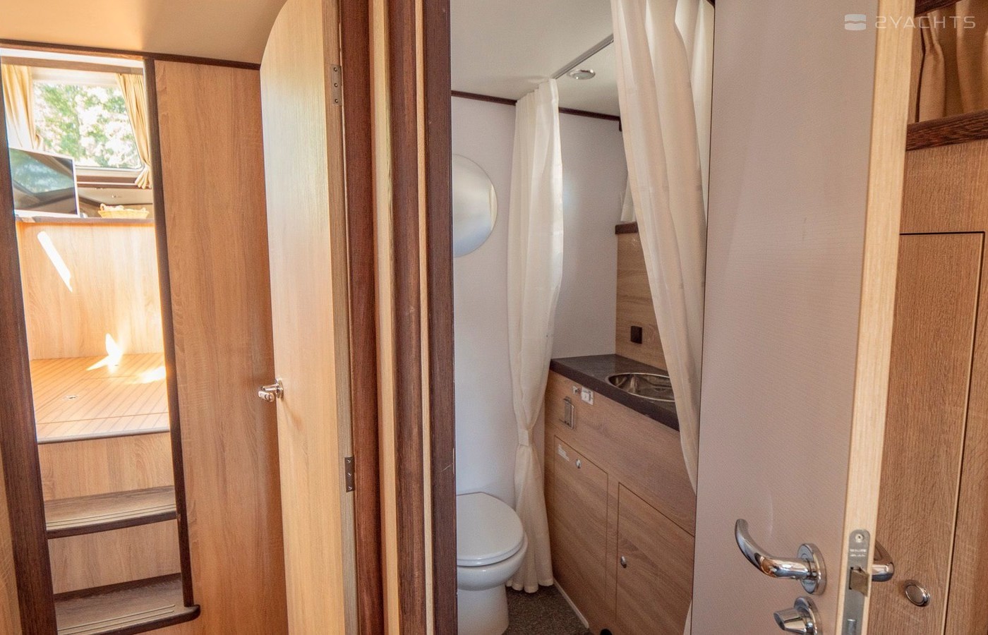 The living area of this houseboat consists of 3 cabins and accommodates 6 people. A shower is at the guests' disposal and there are 3 toilets on board.