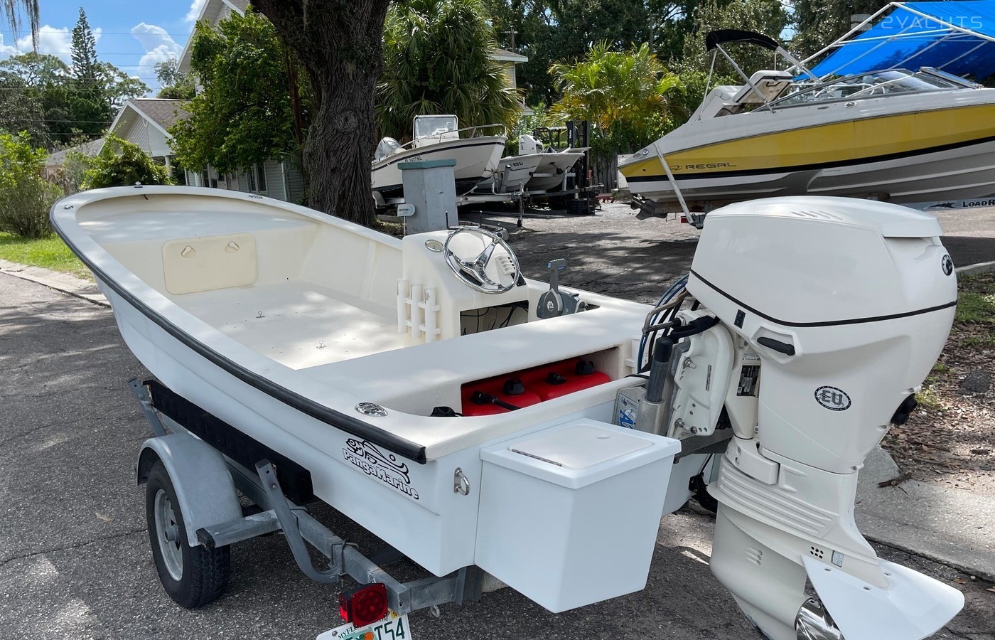 You're looking at a 2009 Panga Marine 18'6" skiff powered by a 2012 Evinrude 60hp E-Tec w/ ONLY 130 hours. Battery & livewell pump replaced 08/2022. Features Include: 6" Atlas jackplate, (2) transom live wells, Stainless prop, (2) fuel tanks, Trailer included.