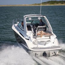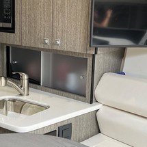 Sleek lines, powerful performance, and luxurious accommodations await you aboard the 295SY. This sport yacht is a captain's dream with its beautifully designed and intelligently laid out helm station, while a spacious cockpit with generous seating offers passengers the perfect space to enjoy the weather or take in views from every angle. Perfectly designed cabin steps usher you below deck where you'll find a comfortable bed, intimate dining area and full-service galley creating the perfect place for a romantic getaway.