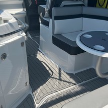 Plenty of “big boat” options including: Mercruiser 8.2 MAG MPI CAT DTS, with Bravo 3 Outdrive, Bow Thruster, Seadek Inlay throughout Swim Platform and Cockpit, Cockpit Refrigerator & Wet Bar, 2 Berths, Head/Shower combo, Underwater LED lights, Stainless Steel Windlass Anchor, Active Trim, Ray Marine 90VHF, GPS AX9/ChartPlotter, LED 19’ Flat Screen TV & DVD Player, Solid Wood Dinette Table, AC with Reverse Cycle Heat, Cockpit Grill, Transom hot/cold shower, Full Canvas and much more …