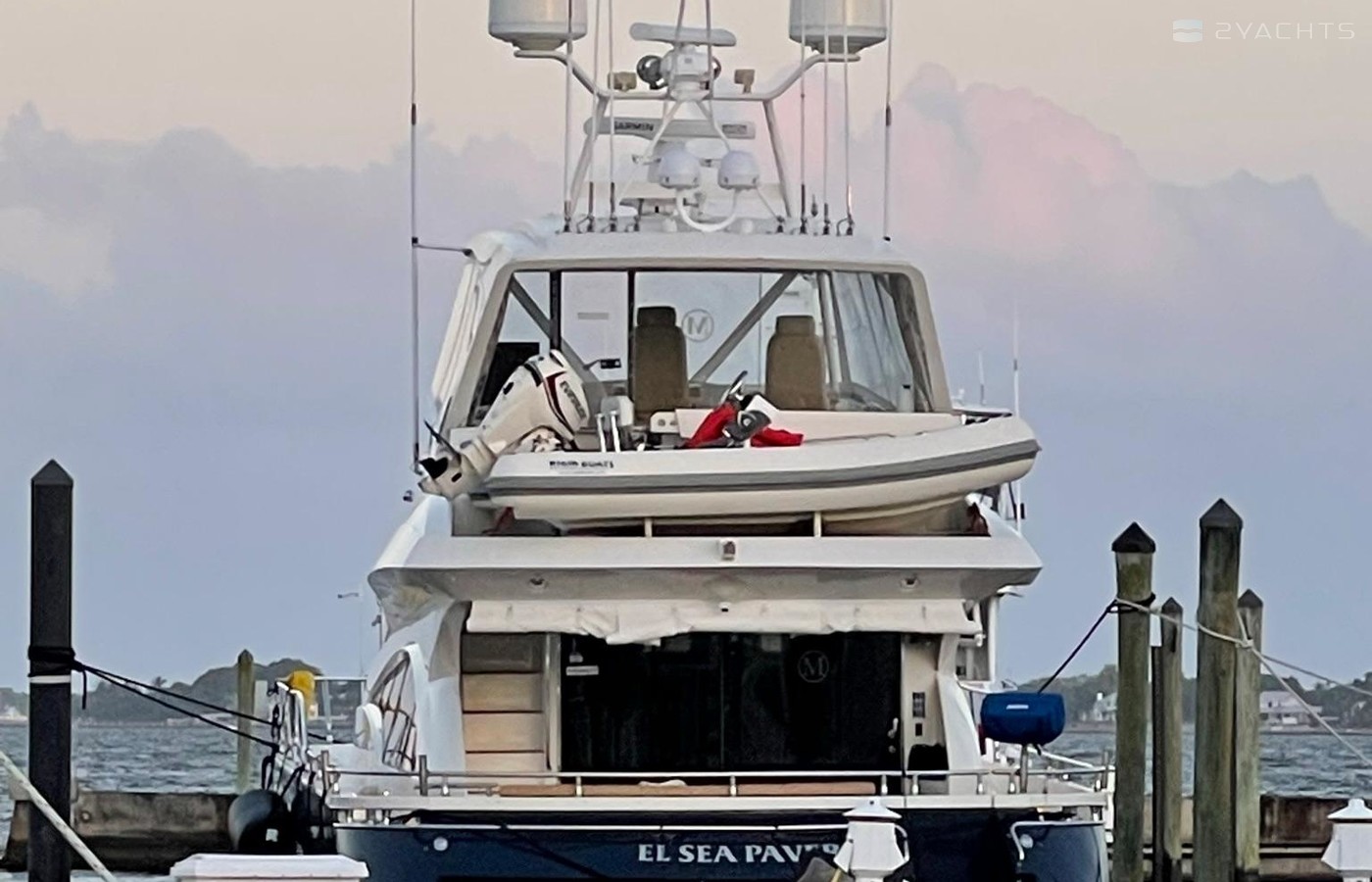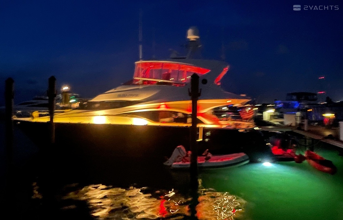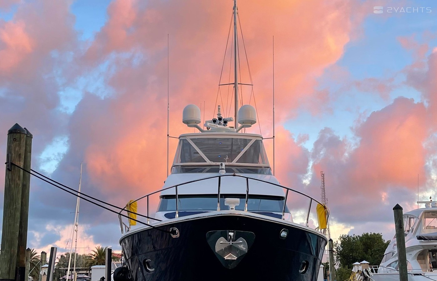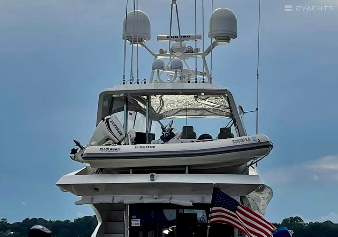 NO BROKERS! Just finished over $300k in upgrades. Almost everything is new or has been redone! No Smells! Perfect! "Category A - Ocean: covers largely self-sufficient boats designed for extended voyages with winds of over Beaufort Force 8 (over 40 knots), and significant wave heights above 13 feet, but excluding abnormal conditions such as hurricanes.“ New Garmin Dual Controls New Garmin Radar New Garmin Autopilot New Garmin Cameras (4) New FLIR (night vision) New Naiad Stabilizers Completely Rebuilt Nautical Structures 1000 Davit New Stern Thruster New Carpet New Satellite New WiFi New Sound System New Smart TV’s $20k Custom Lighting Package New Upholstery New Isinglass New Headhunter New Misting System New Teak New Paint & Prop Speed 2 Brand New Props 2 Brand New Cable Master 2 Brand New 100’ Cables Brand New Spare set of Props! Completely Rebuilt Hydraulic Swim Platform New Power Steering Pumpset Enclosed Flybridge with Heat and A/C New Oversized Flybridge A/C Pump Brand New Steering Ram (not rebuilt) Spare power steering ram Brand new spare set of props Glass Back Flybridge Enclosure Only 1,650 on 825hp MTU’s Series 60's. HOLDS A WAVERUNNER AND A TENDER!