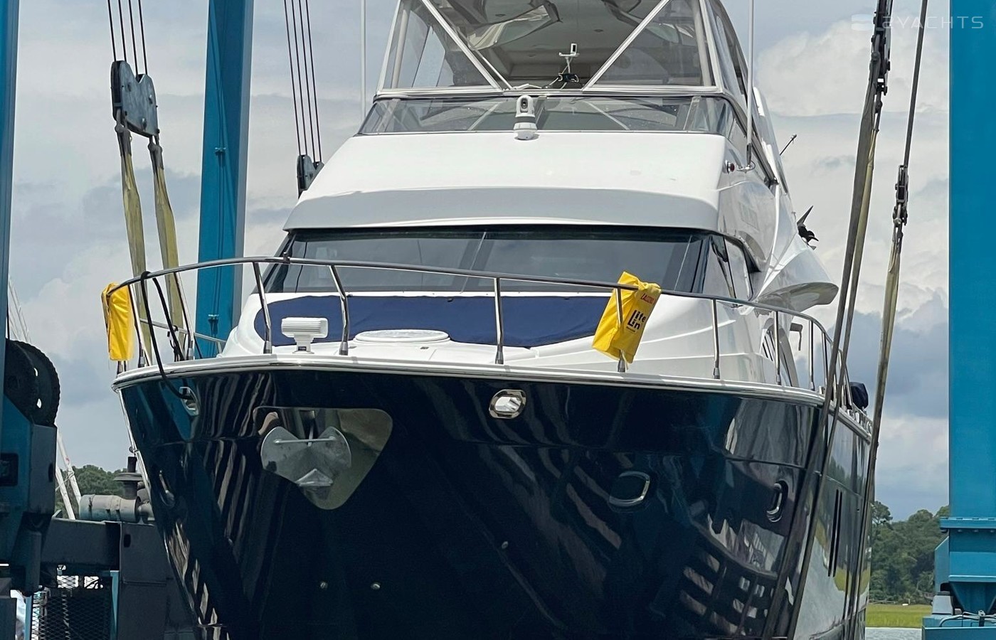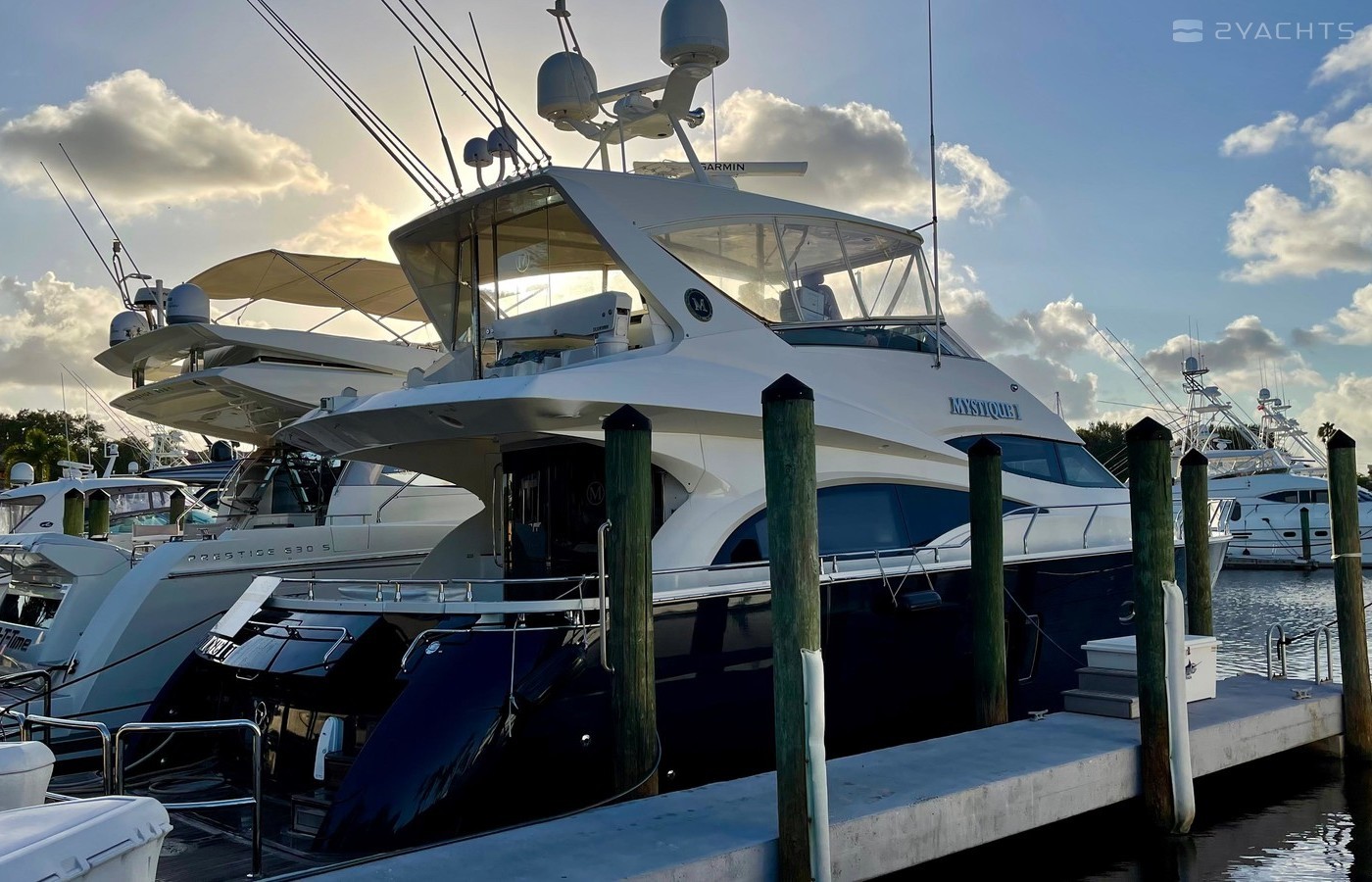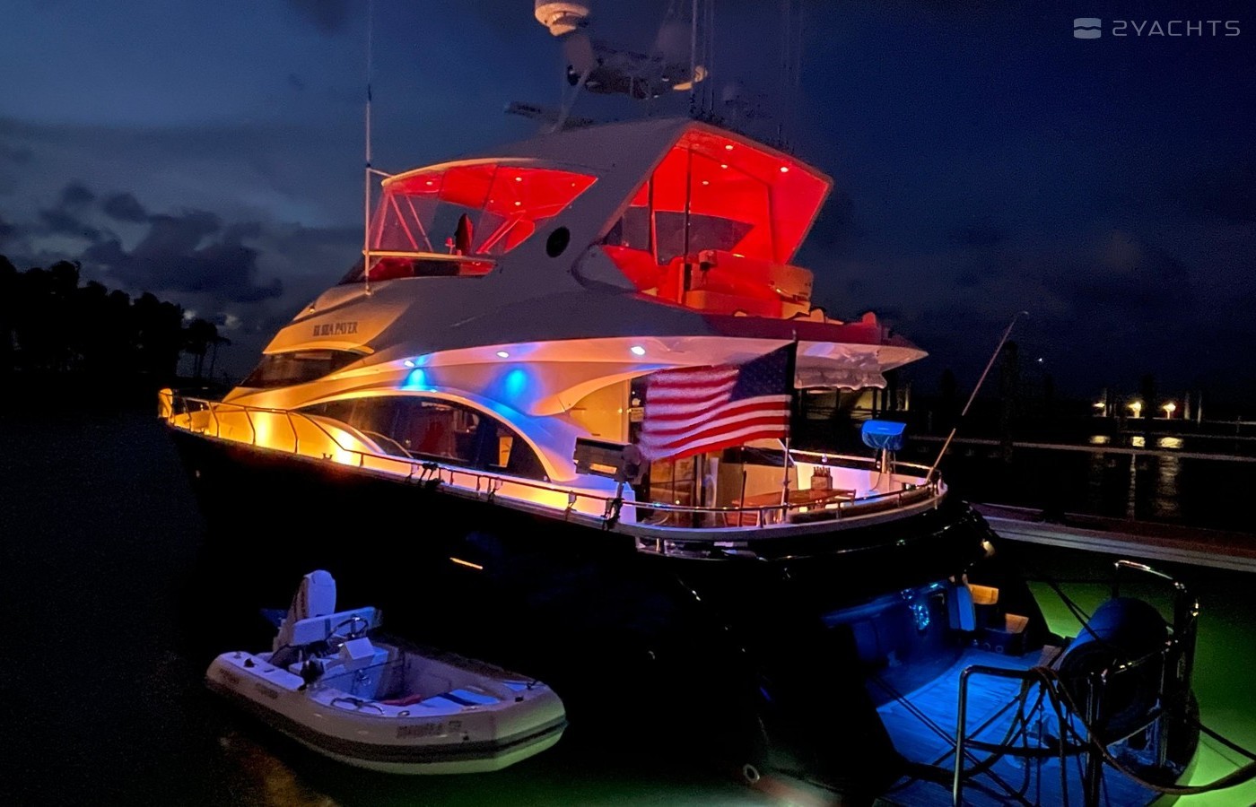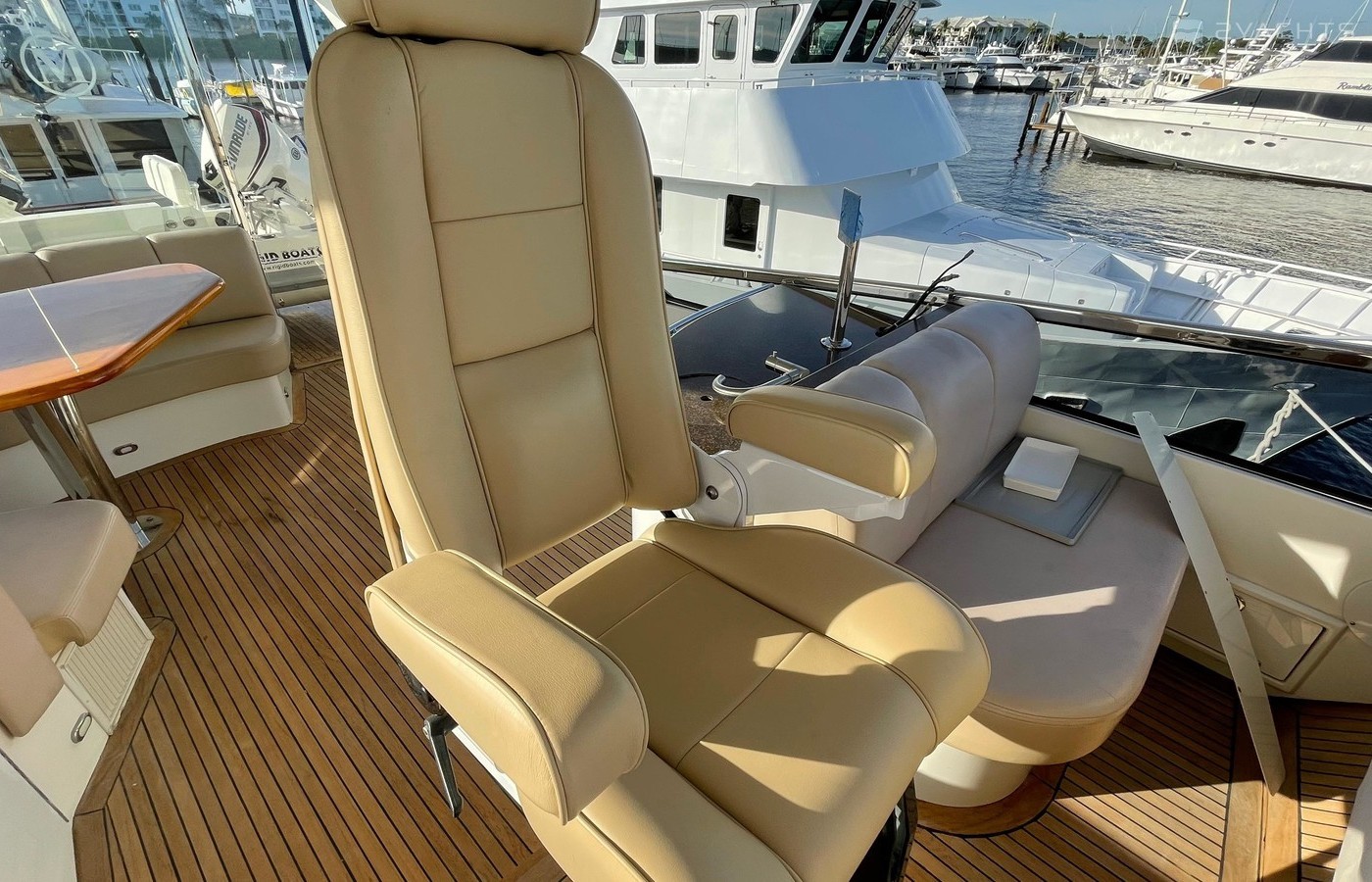 NO BROKERS! Just finished over $300k in upgrades. Almost everything is new or has been redone! No Smells! Perfect! "Category A - Ocean: covers largely self-sufficient boats designed for extended voyages with winds of over Beaufort Force 8 (over 40 knots), and significant wave heights above 13 feet, but excluding abnormal conditions such as hurricanes.“ New Garmin Dual Controls New Garmin Radar New Garmin Autopilot New Garmin Cameras (4) New FLIR (night vision) New Naiad Stabilizers Completely Rebuilt Nautical Structures 1000 Davit New Stern Thruster New Carpet New Satellite New WiFi New Sound System New Smart TV’s $20k Custom Lighting Package New Upholstery New Isinglass New Headhunter New Misting System New Teak New Paint & Prop Speed 2 Brand New Props 2 Brand New Cable Master 2 Brand New 100’ Cables Brand New Spare set of Props! Completely Rebuilt Hydraulic Swim Platform New Power Steering Pumpset Enclosed Flybridge with Heat and A/C New Oversized Flybridge A/C Pump Brand New Steering Ram (not rebuilt) Spare power steering ram Brand new spare set of props Glass Back Flybridge Enclosure Only 1,650 on 825hp MTU’s Series 60's. HOLDS A WAVERUNNER AND A TENDER!