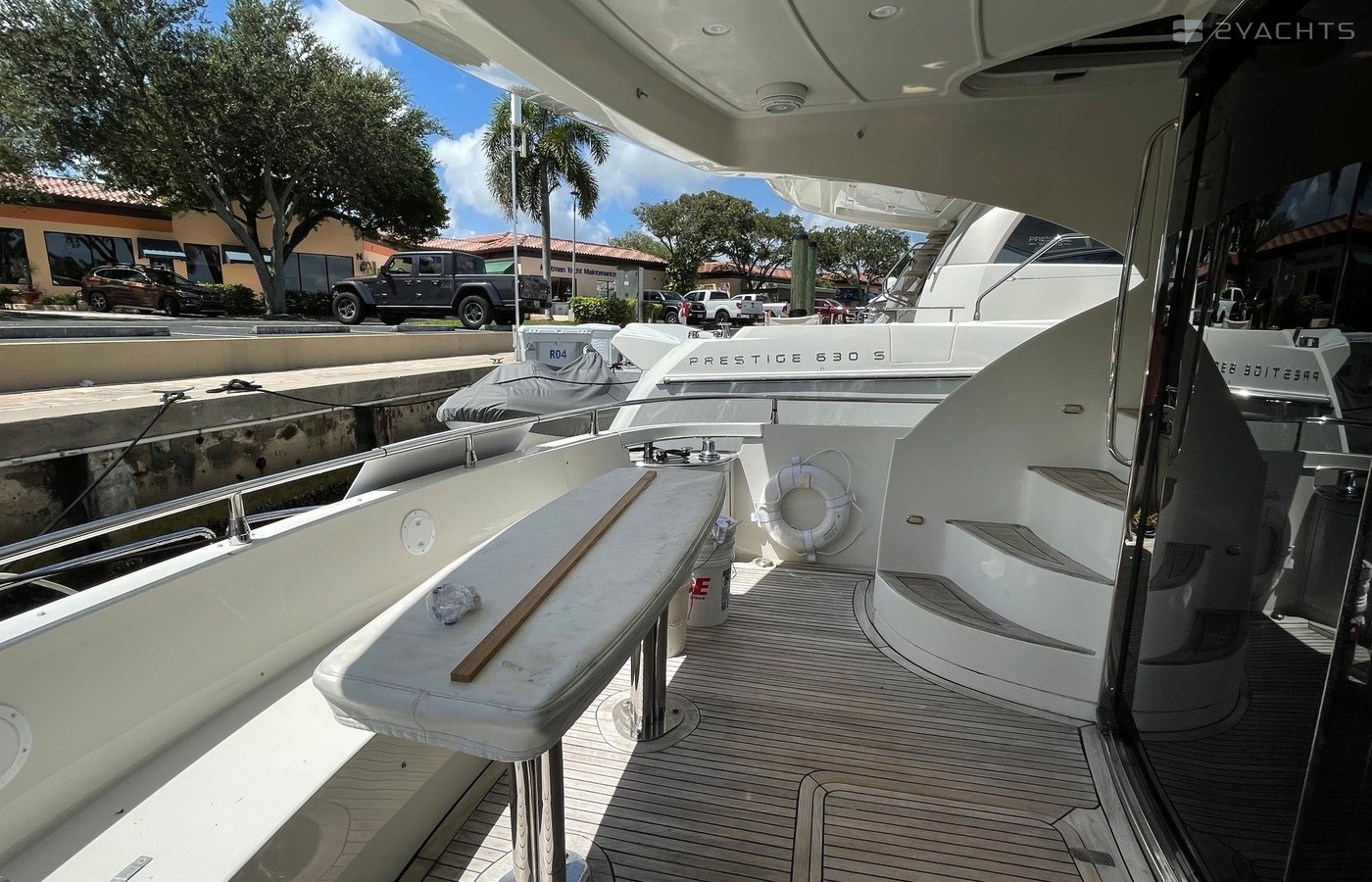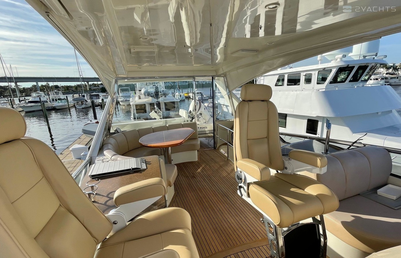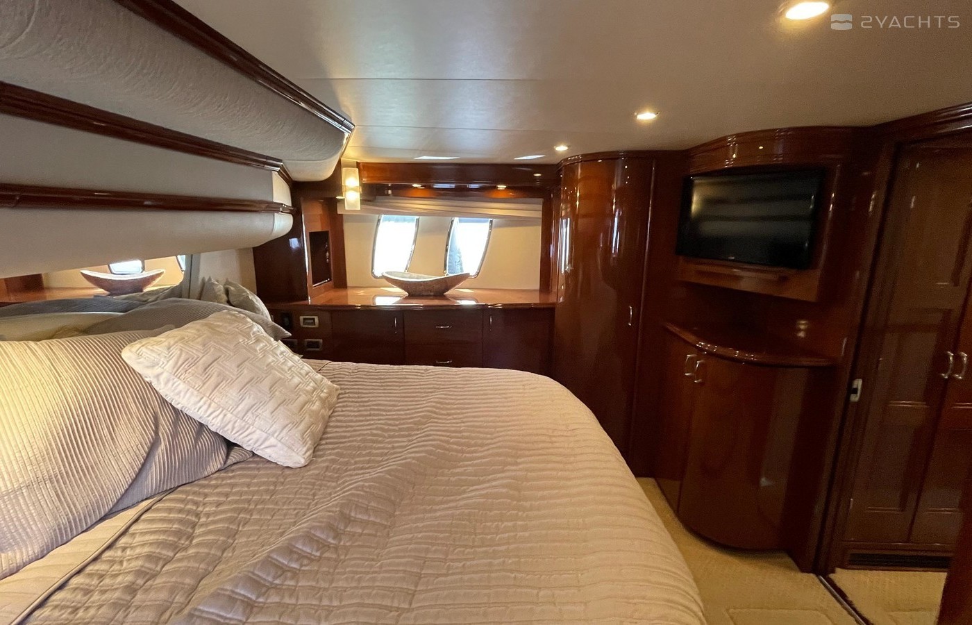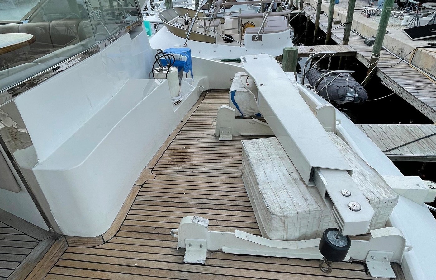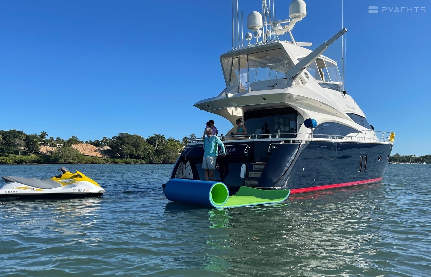 NO BROKERS! Just finished over $300k in upgrades. Almost everything is new or has been redone! No Smells! Perfect! "Category A - Ocean: covers largely self-sufficient boats designed for extended voyages with winds of over Beaufort Force 8 (over 40 knots), and significant wave heights above 13 feet, but excluding abnormal conditions such as hurricanes.“ New Garmin Dual Controls New Garmin Radar New Garmin Autopilot New Garmin Cameras (4) New FLIR (night vision) New Naiad Stabilizers Completely Rebuilt Nautical Structures 1000 Davit New Stern Thruster New Carpet New Satellite New WiFi New Sound System New Smart TV’s $20k Custom Lighting Package New Upholstery New Isinglass New Headhunter New Misting System New Teak New Paint & Prop Speed 2 Brand New Props 2 Brand New Cable Master 2 Brand New 100’ Cables Brand New Spare set of Props! Completely Rebuilt Hydraulic Swim Platform New Power Steering Pumpset Enclosed Flybridge with Heat and A/C New Oversized Flybridge A/C Pump Brand New Steering Ram (not rebuilt) Spare power steering ram Brand new spare set of props Glass Back Flybridge Enclosure Only 1,650 on 825hp MTU’s Series 60's. HOLDS A WAVERUNNER AND A TENDER!