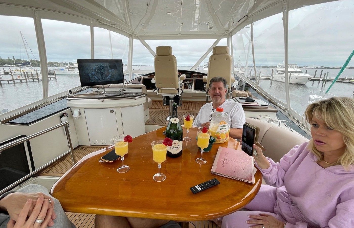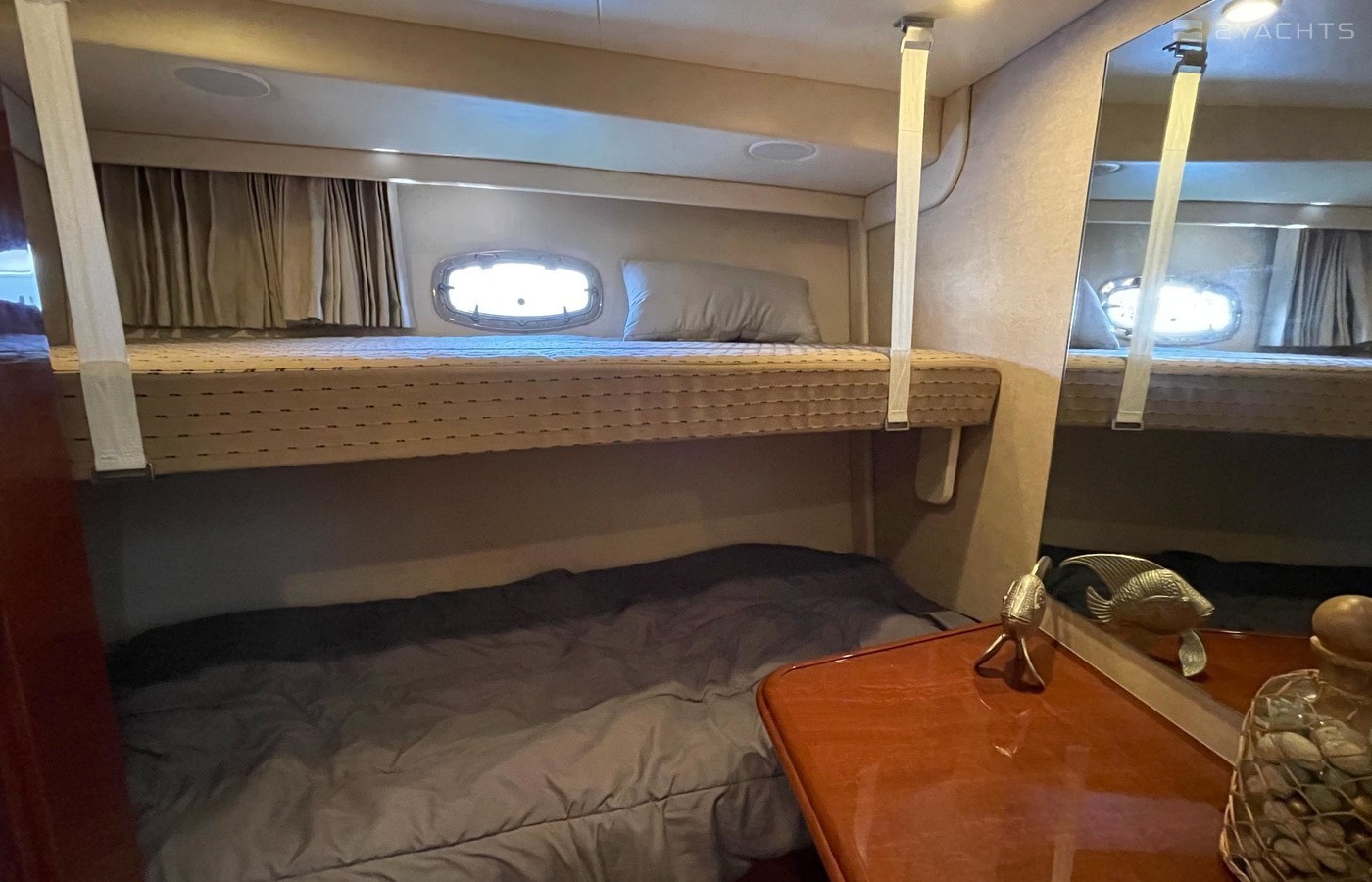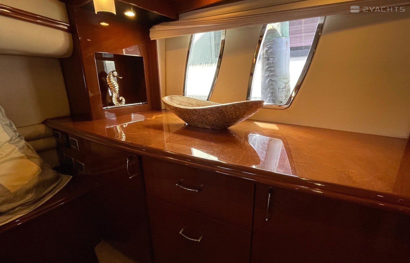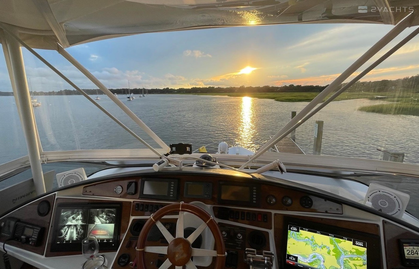 NO BROKERS! Just finished over $300k in upgrades. Almost everything is new or has been redone! No Smells! Perfect! "Category A - Ocean: covers largely self-sufficient boats designed for extended voyages with winds of over Beaufort Force 8 (over 40 knots), and significant wave heights above 13 feet, but excluding abnormal conditions such as hurricanes.“ New Garmin Dual Controls New Garmin Radar New Garmin Autopilot New Garmin Cameras (4) New FLIR (night vision) New Naiad Stabilizers Completely Rebuilt Nautical Structures 1000 Davit New Stern Thruster New Carpet New Satellite New WiFi New Sound System New Smart TV’s $20k Custom Lighting Package New Upholstery New Isinglass New Headhunter New Misting System New Teak New Paint & Prop Speed 2 Brand New Props 2 Brand New Cable Master 2 Brand New 100’ Cables Brand New Spare set of Props! Completely Rebuilt Hydraulic Swim Platform New Power Steering Pumpset Enclosed Flybridge with Heat and A/C New Oversized Flybridge A/C Pump Brand New Steering Ram (not rebuilt) Spare power steering ram Brand new spare set of props Glass Back Flybridge Enclosure Only 1,650 on 825hp MTU’s Series 60's. HOLDS A WAVERUNNER AND A TENDER!