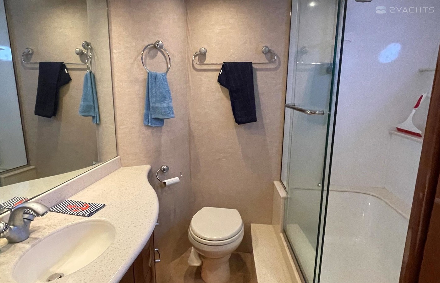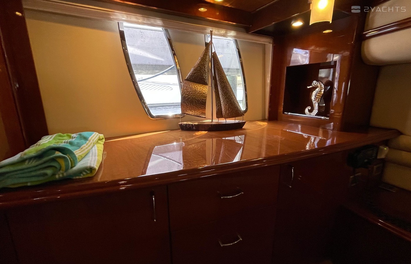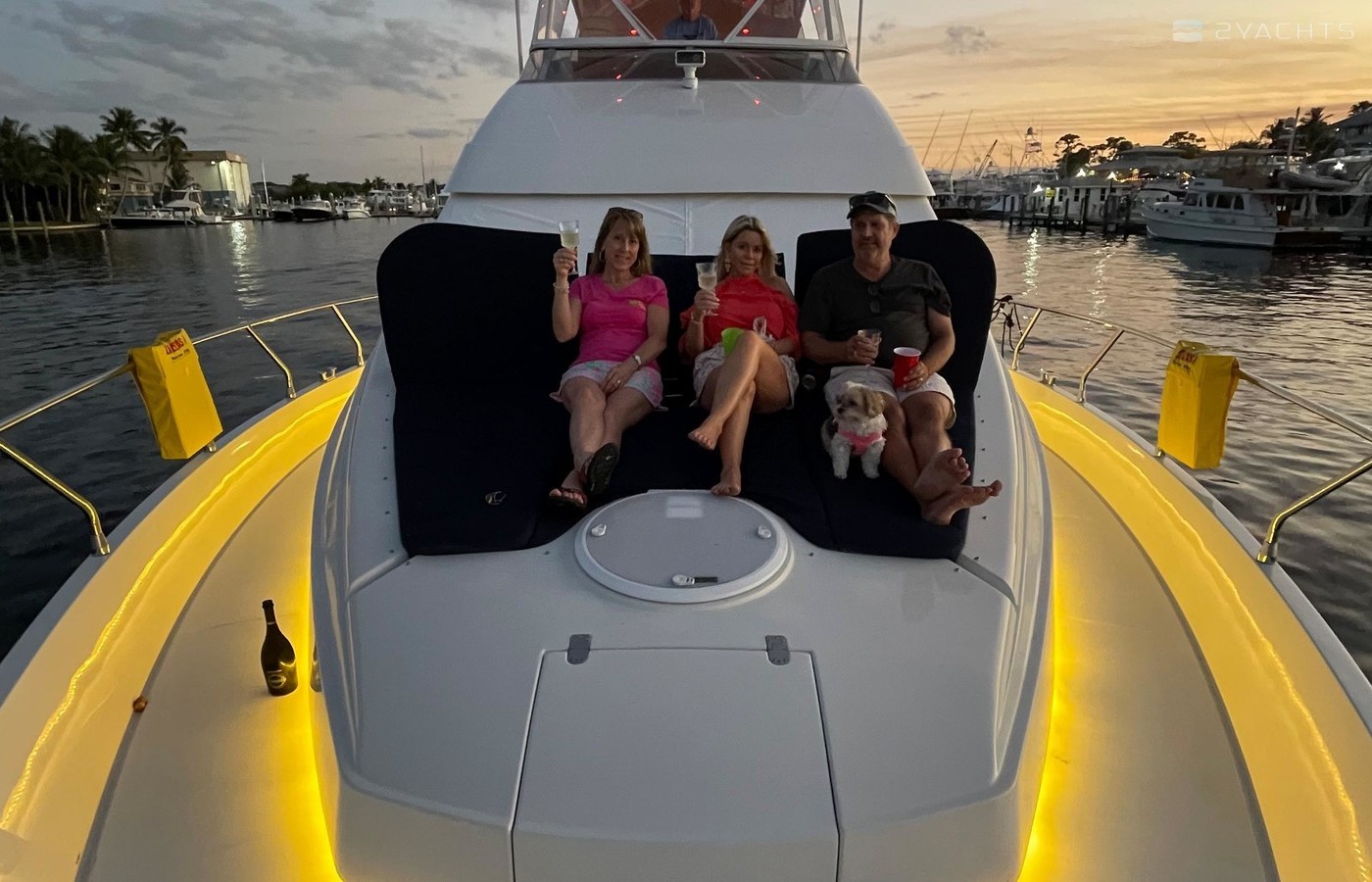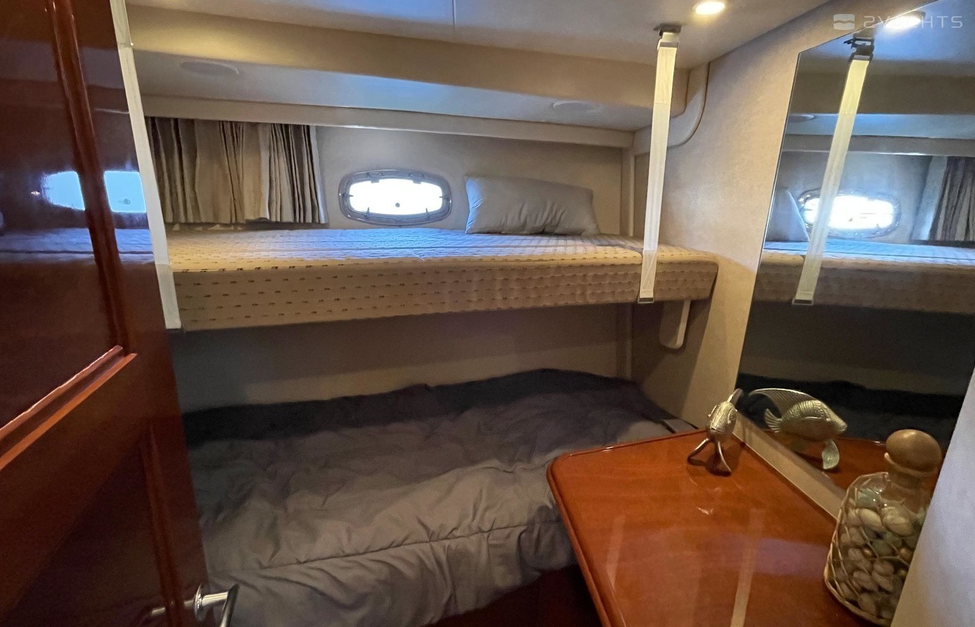 NO BROKERS! Just finished over $300k in upgrades. Almost everything is new or has been redone! No Smells! Perfect! "Category A - Ocean: covers largely self-sufficient boats designed for extended voyages with winds of over Beaufort Force 8 (over 40 knots), and significant wave heights above 13 feet, but excluding abnormal conditions such as hurricanes.“ New Garmin Dual Controls New Garmin Radar New Garmin Autopilot New Garmin Cameras (4) New FLIR (night vision) New Naiad Stabilizers Completely Rebuilt Nautical Structures 1000 Davit New Stern Thruster New Carpet New Satellite New WiFi New Sound System New Smart TV’s $20k Custom Lighting Package New Upholstery New Isinglass New Headhunter New Misting System New Teak New Paint & Prop Speed 2 Brand New Props 2 Brand New Cable Master 2 Brand New 100’ Cables Brand New Spare set of Props! Completely Rebuilt Hydraulic Swim Platform New Power Steering Pumpset Enclosed Flybridge with Heat and A/C New Oversized Flybridge A/C Pump Brand New Steering Ram (not rebuilt) Spare power steering ram Brand new spare set of props Glass Back Flybridge Enclosure Only 1,650 on 825hp MTU’s Series 60's. HOLDS A WAVERUNNER AND A TENDER!