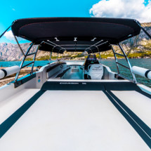 Cruising with this motorboat is great fun as it is equipped with an outside speakers and an audio system.