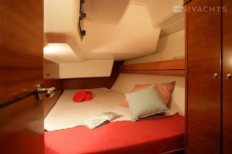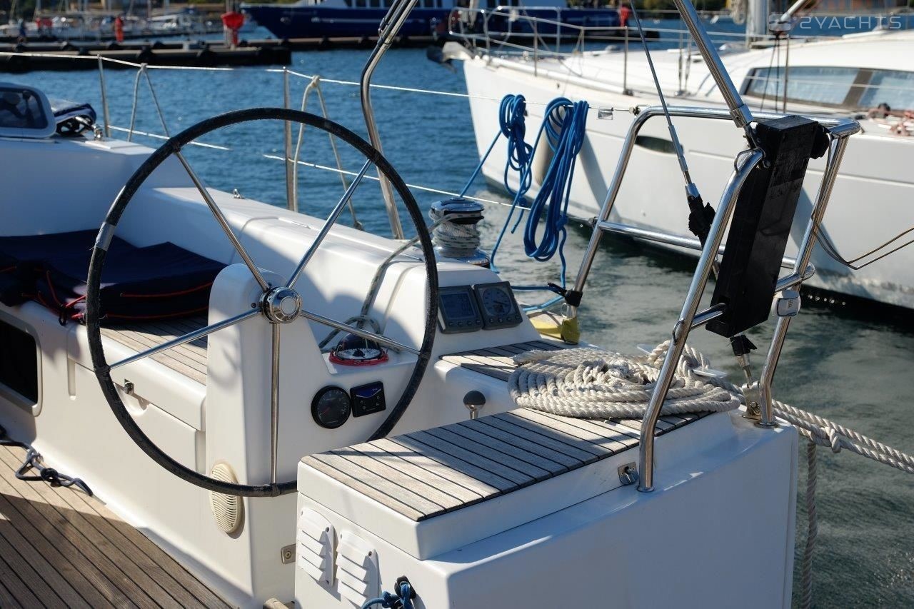 Boat equipment features classical mainsail, salon gps plotter, bimini and bathing platform. It also boasts an an audio system, outside speakers and inside speakers. The fully-equipped galley includes an oven, cooker, sink and kitchen utensils.