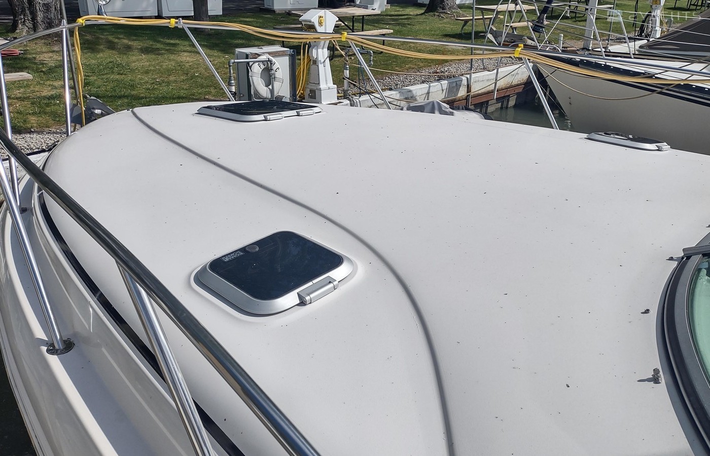-NEW Canvas!-Bimini Top with Side Curtains-Aft Curtain-Radar Arch-Deck Carpet-L-Lounge Seating-Ice Maker-Wet Bar-Cockpit Shower-Shore Water Connection-Shore Power Connection-Swim Platform-Swim Ladder-Windlass-Remote Searchlight