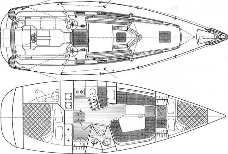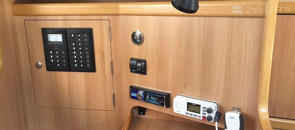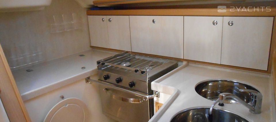Boat equipment features classical mainsail, bimini and outside gps plotter. It also boasts a flat screen tv, an audio system, dvd player, outside speakers and inside speakers. The fully-equipped galley includes a freezer, coffee machine, oven, cooker and sink.