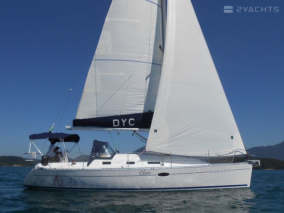 2-cabin sailing yacht Delta 36 - Futuro 12 was built in 2016, and it is docked in Marina Bracuhy, Brazil.