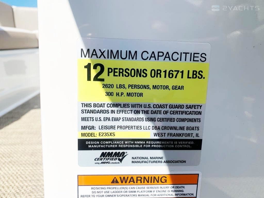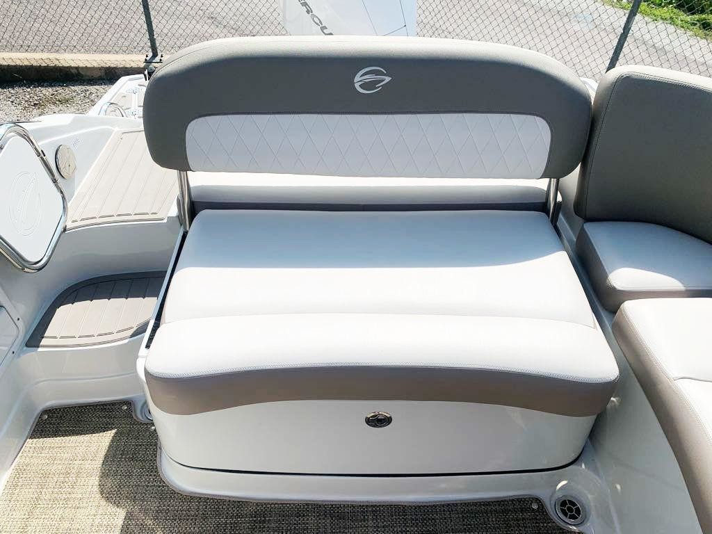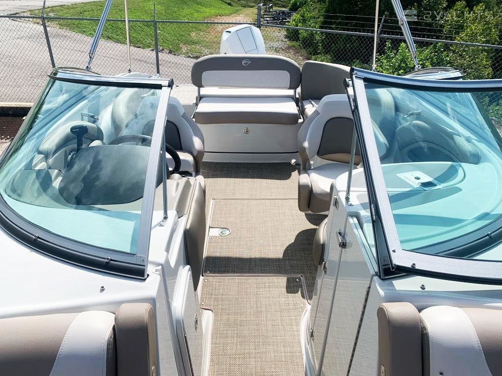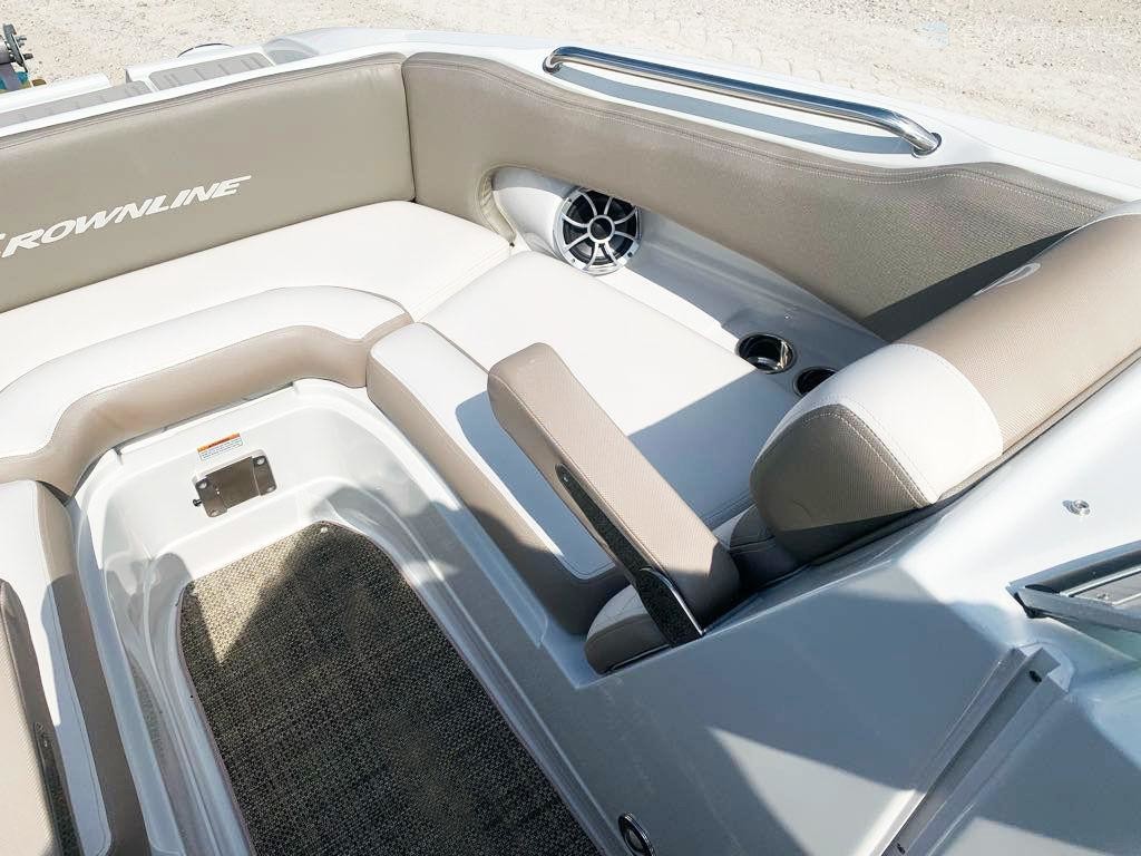 The new Crownline E 235 XS (previously names E23 XS) has the sleek, racy style lines and ride of a sport boat, the comforts and conveniences of a deck boat….with an outboard engine! And, it’s built on Crownline’s patented F.A.S.T. Tab® hull design, which stabilizes the hull for smooth, high speed turning and getting on plane fast! This boat is no slouch when it comes to performance. Take it for a ride….you will fall in love!