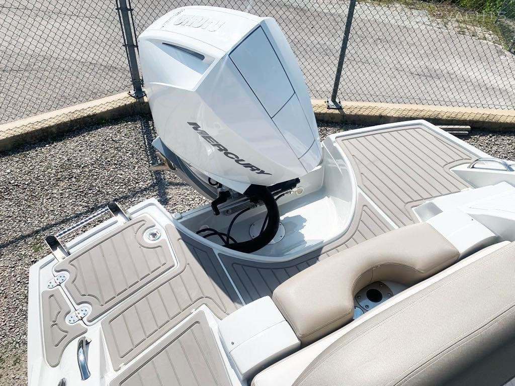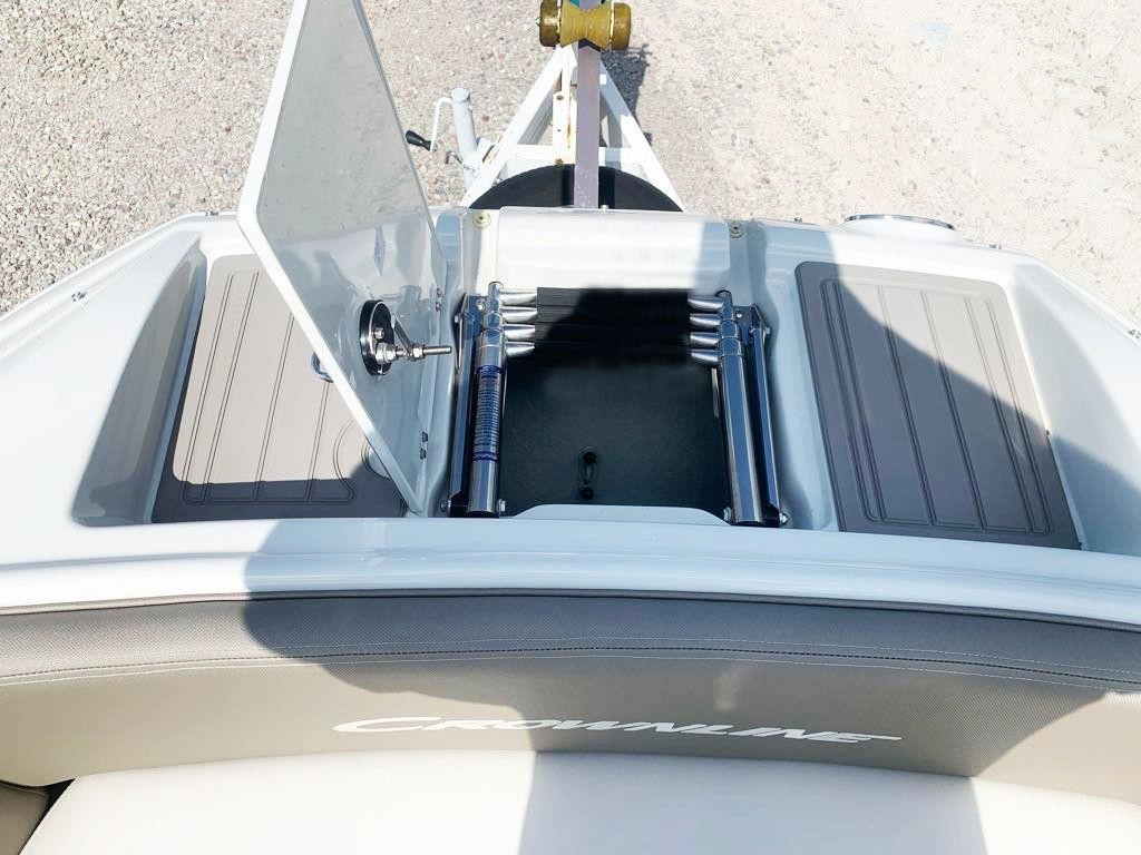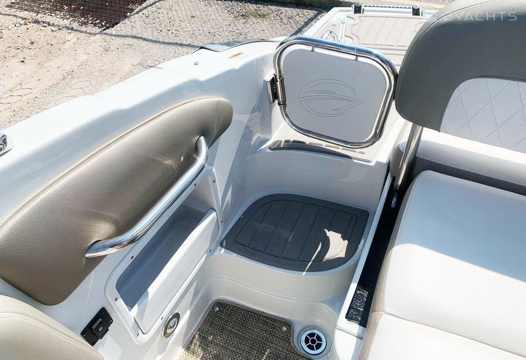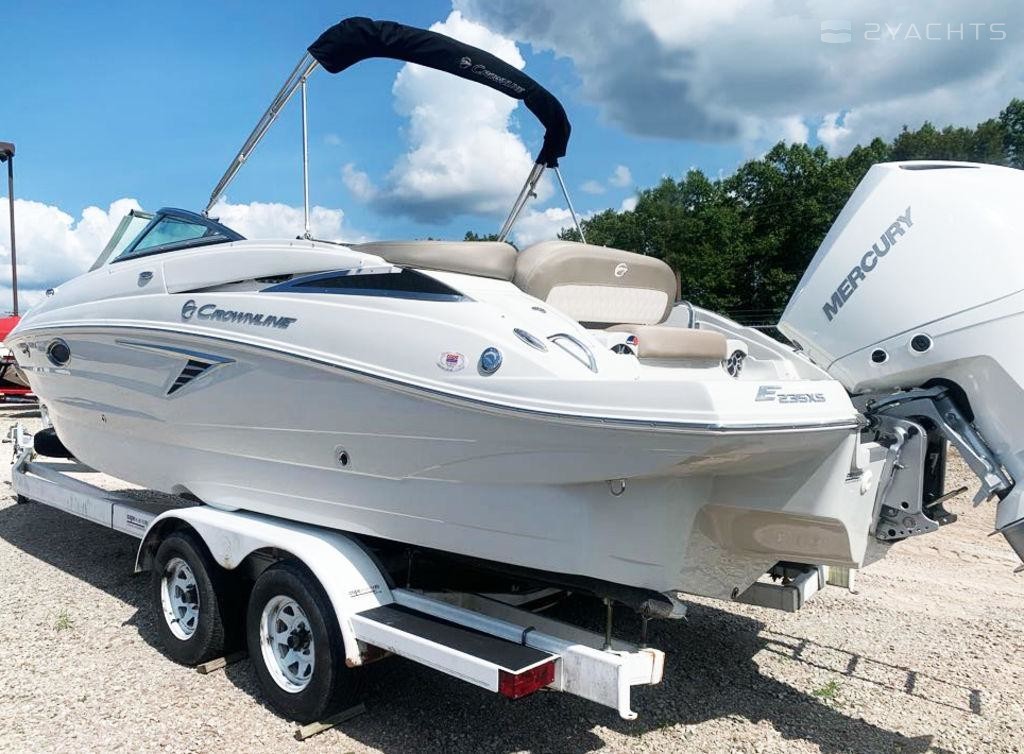 The new Crownline E 235 XS (previously names E23 XS) has the sleek, racy style lines and ride of a sport boat, the comforts and conveniences of a deck boat….with an outboard engine! And, it’s built on Crownline’s patented F.A.S.T. Tab® hull design, which stabilizes the hull for smooth, high speed turning and getting on plane fast! This boat is no slouch when it comes to performance. Take it for a ride….you will fall in love!