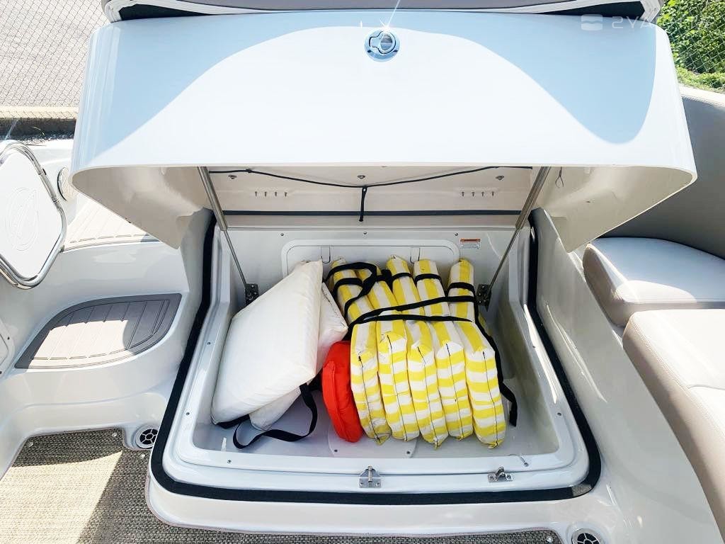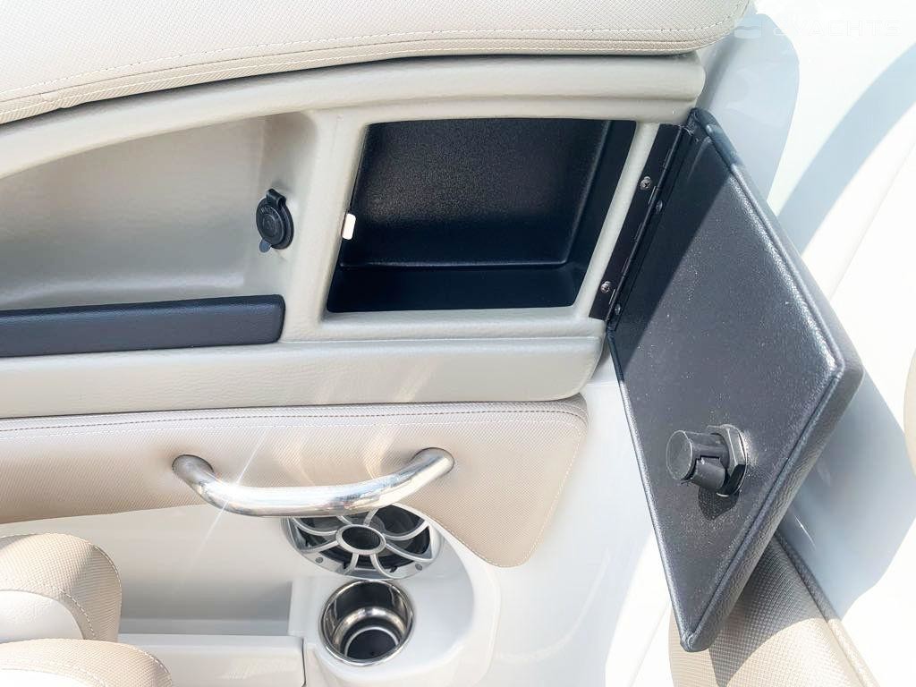There’s a ton of room to stow away all of your gear. Storage areas with impact resistant, non-marring coating for skis, boards and toys ensure a clutter-free boat. The side mount portable table stows away in the undermount cockpit storage drawer when not in use.