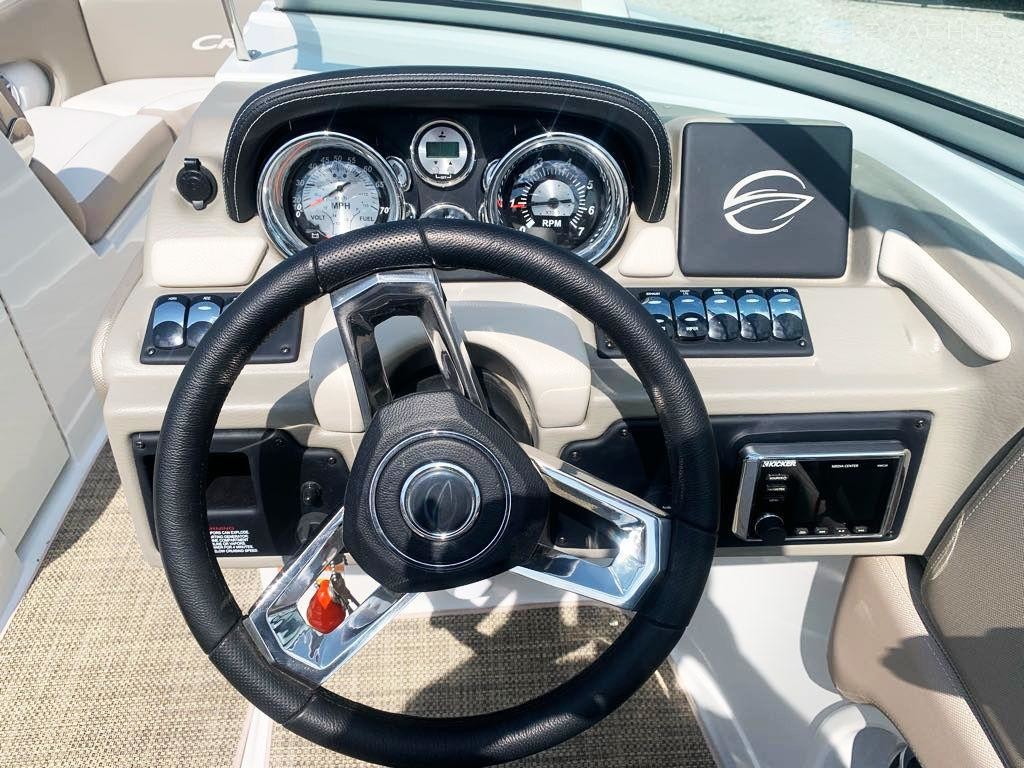 Additional standard features include a Kicker marine stereo with full color LCD display and variable dimmer with day / night mode, AM/FM weatherband multi-regional tuner, USB with iPod, iPhone and Android charge, AUX input and Bluetooth. There are eight Wetsounds speakers throughout the boat, a battery charger, bow flip-up arm rests, flush fit bow walk thru door, bimini top, one piece boat cover, depth sounder, docking lights, dual battery switch and more! E 235 XS Named by Boating Industry "Top Product of 2018"