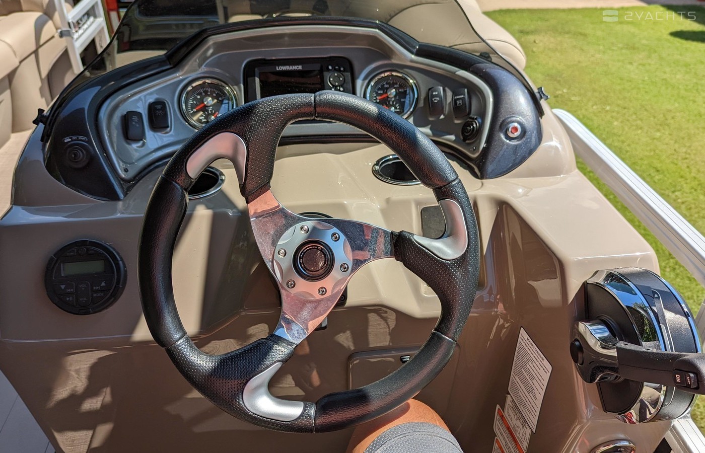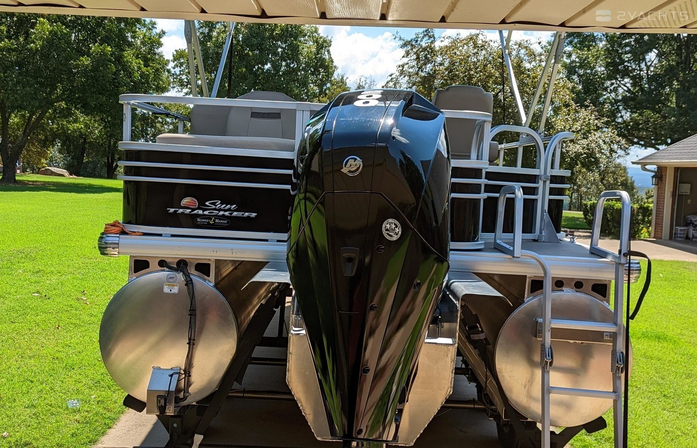 Lorance Fishfinder built into control panel. BAZOOKA Bluetooth Soundbar built into canopy. 200HP Mercury. Dual axle trailer with brakes.