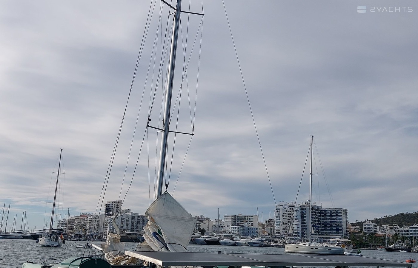 Boat equipment features classical mainsail, solar panels, bimini and outside gps plotter. It also boasts an an audio system, outside speakers and inside speakers.