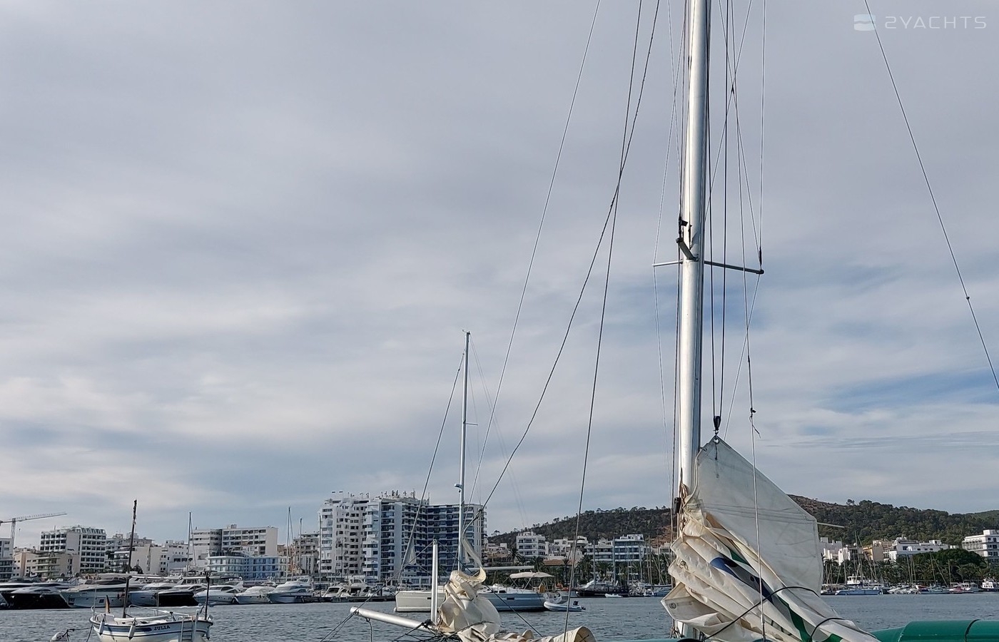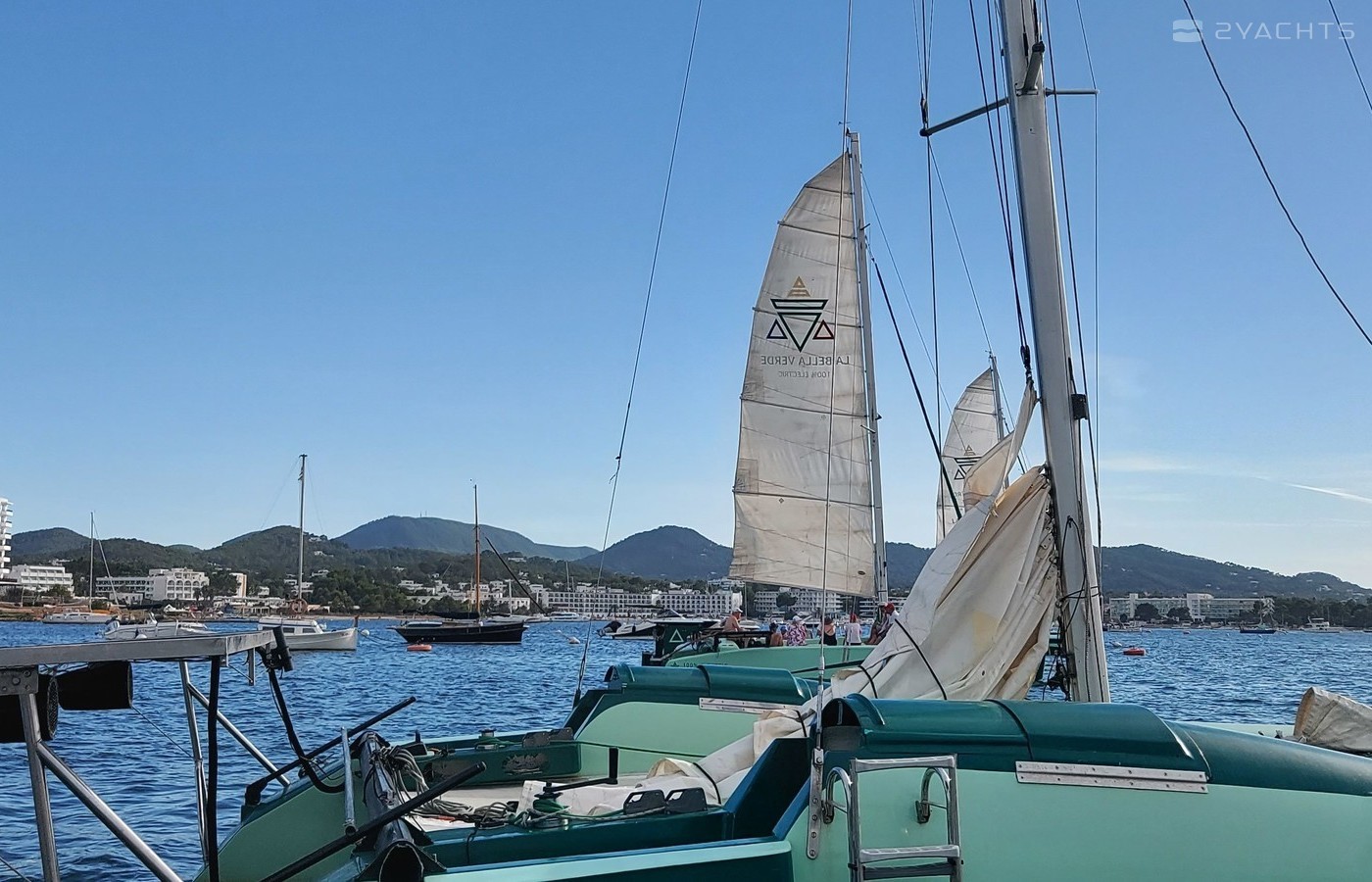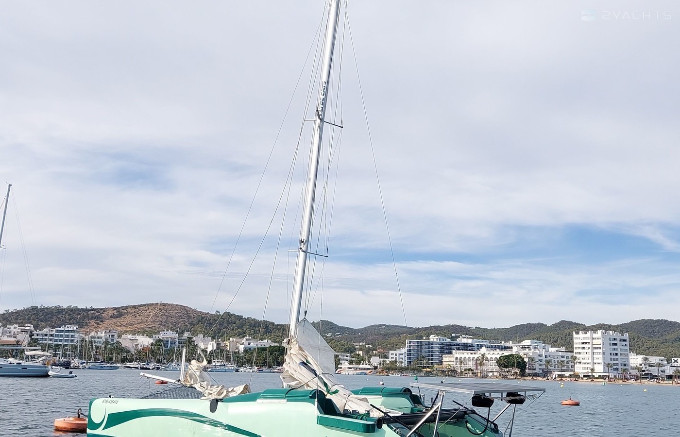 Catamaran Fountaine Pajot Corneel 32 - Nalu Kai was built in 1983, (renovated in 2020,) and it is docked in Club Nàutic Sant Antoni de Portmany, Spain.