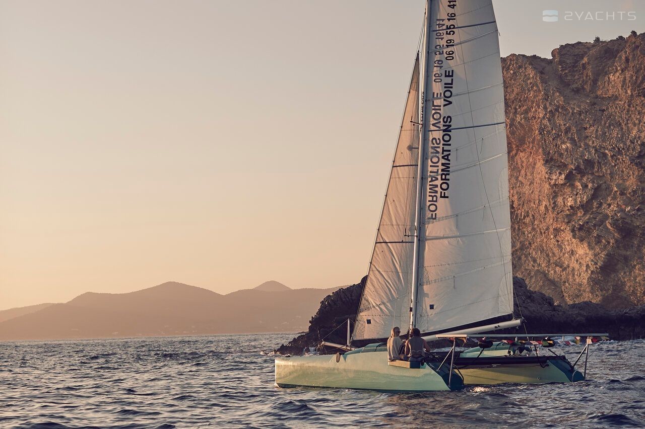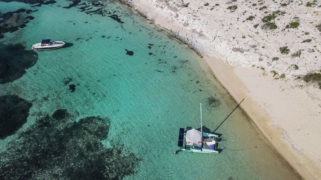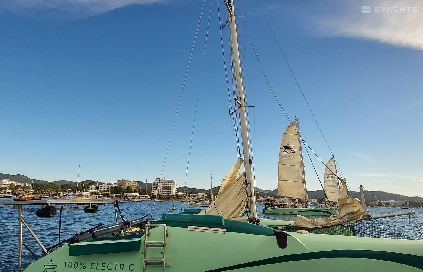 Catamaran Fountaine Pajot Corneel 32 - Nalu Kai was built in 1983, (renovated in 2020,) and it is docked in Club Nàutic Sant Antoni de Portmany, Spain.