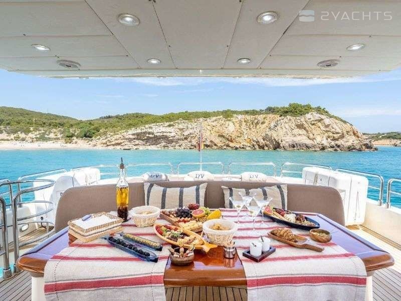 5-cabin motor yacht Astondoa 102 - Dolce Vita 4 was built in 2007, (renovated in 2021,) and it is docked in Marina Ibiza, Spain.