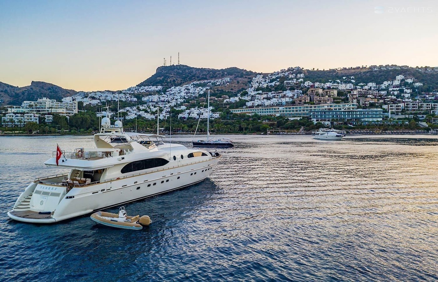 5-cabin motor yacht Falcon 115 - Sanref was built in 2007, and it is docked in Bodrum Milta Marina, Turkey.