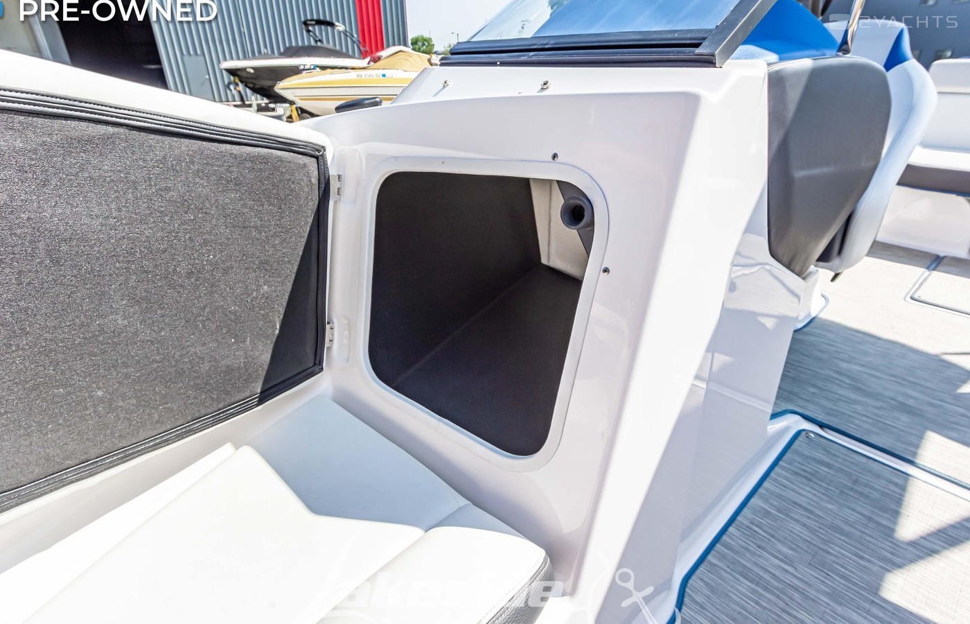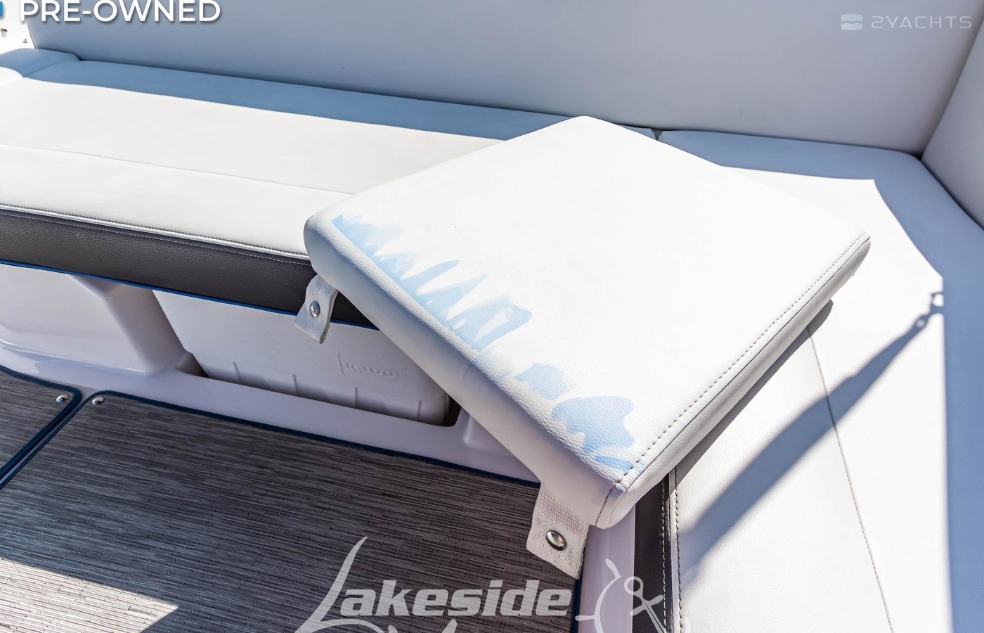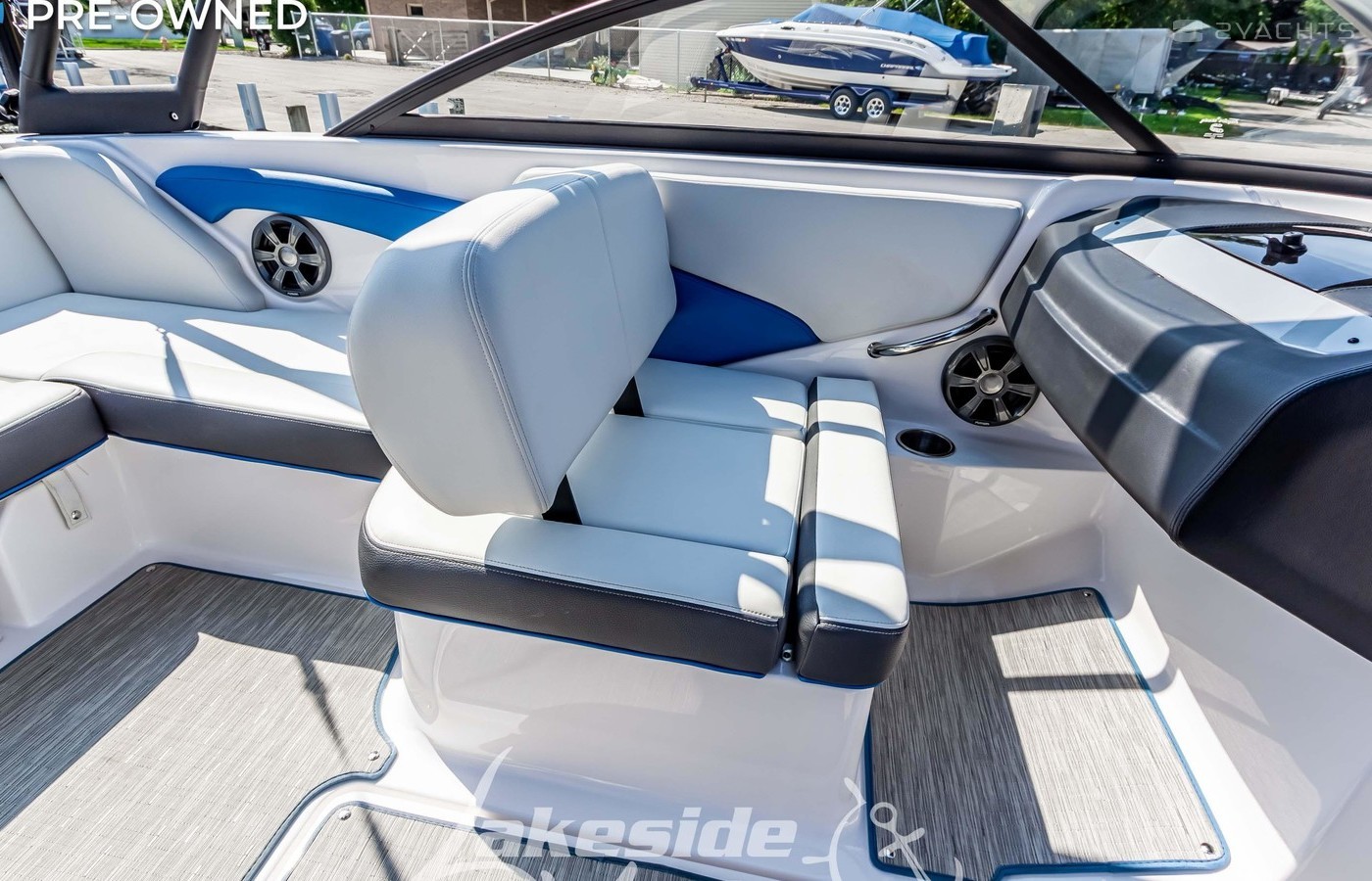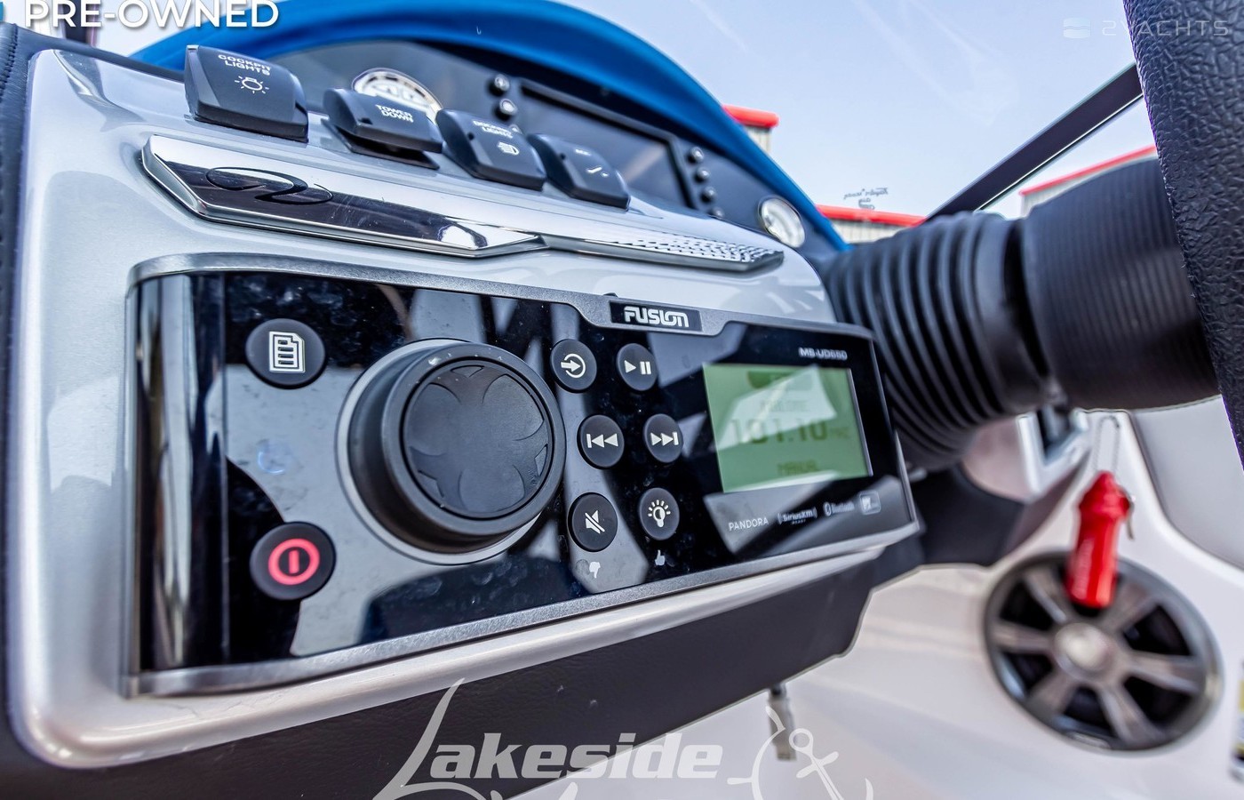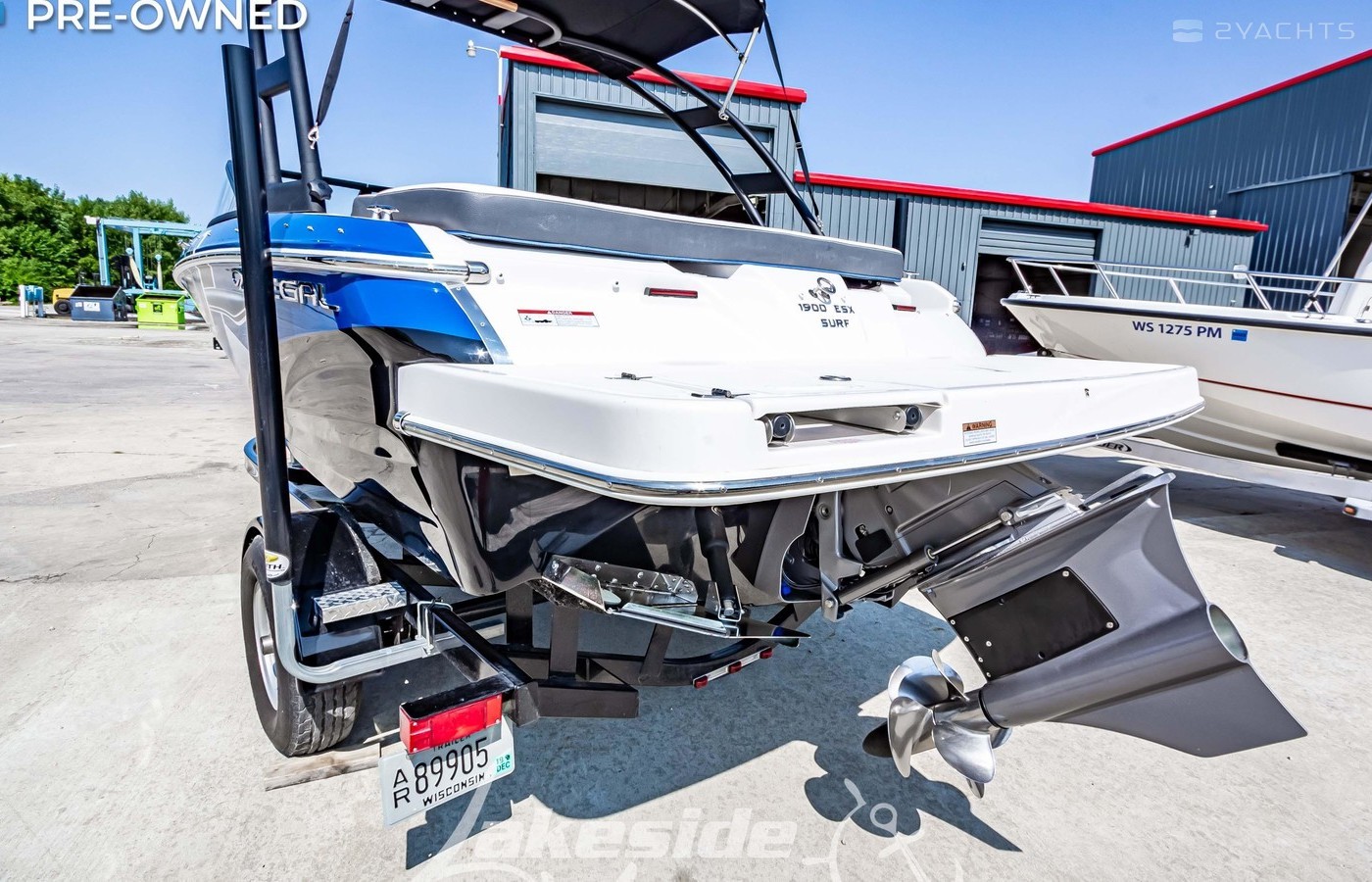 PARADIGM SHIFTThe Regal 19 Surf is a great 19' boat with the versatility to raise your adrenaline levels and comfortably cruise to your favorite sand bar. The RegalVue display and Surf System provide the ultimate tool for both the casual and serious surfers while the FasTrac hull allows for faster speeds, better fuel efficiency, and a smooth ride, even in chop. At this extraordinary value, the 19 Surf will change the way you think about surf boats.This boat is powered by a Volvo Penta V6 200 HP. The small rear filler cushion has a bit of blue staining near one seam.Features may include:Automatic Bilge PumpThe automatic bilge pump takes action before you even realize what is wrong.NMMA, ABYC, USCG & CE CertifiedRegal makes sure that it meets the highest standards of safety in the industry.Regal Surf SystemRegal's Surf System combines wave shaping tabs, Volvo's Forward Drive, and a touch-screen RegalVue display for an endless wave.Volvo Forward DriveWhether wakesurfing, wakeboarding or cruising, Forward Drive allows boaters to enjoy endless days of fun with extreme versatility.Battery SwitchThe standard battery switch will add longevity to the life of your battery.Power Assisted SteeringNothing like fingertip control created by the power steering.RegalVue with Surf ControlChoose your speed, pick a wave direction, and deploy the tabs all with just a few taps on the touchscreen display.Weather Resistant Deutsch ConnectorsOn a Regal you'll find Deutsch connectors for superior protection and durability.Courtesy Blue LED LightsWith the standard blue LED cockpit lights, your boat is sure to make a statement at the dock.Fiberglass Cockpit LinerLighter and stronger than wood, this liner ensures that all water will flow to the appropriate drain and not be absorbed.Fusion Marine Sound - 4 Cockpit SpeakersThe best sound begins with the best equipment. That means four 200 watt Fusion cockpit speakers with an IP65 waterproof rating.Lockable Glove BoxThe lockable glove block is a perfect spot to store your valuables while at the dock.Removable CoolerThe 19 features a removable 25 quart Igloo cooler that will handle even the thirstiest of crewsSocial SeatingThe multi-position backrest gives you the functionality of a bucket seat, combined with the social cockpit of an arena seat.Stainless Hand RailsRegals feature stainless hand rails, not plastic.SunpadThis transom sunpad provides for a great place to soak up the sun and spend time with friends.Transom Walk-ThruThe transom walk-thru saves your upholstery from being trampled on.ESX Upholstery PackagesThe Regal ESX model comes standard with blue color matched interior.Fiberglass HatchesMany manufacturers use starboard instead of fiberglass. However, starboard is not color-matched and is very slippery when wet.Fusion Stereo BluetoothGet the best sound out of the best equipment... wirelessly.MarineTred Non-SkidDiamond MarineTred is incorporated into the mold for a superior finish. It's less abrasive and easier to clean.Ski LockerFor those brief periods of time when you're not skiing, the ski locker is the perfect place to store your toys.Contact us today for answers to any questions you may have, to schedule a private showing, or to put down a deposit to hold the boat.