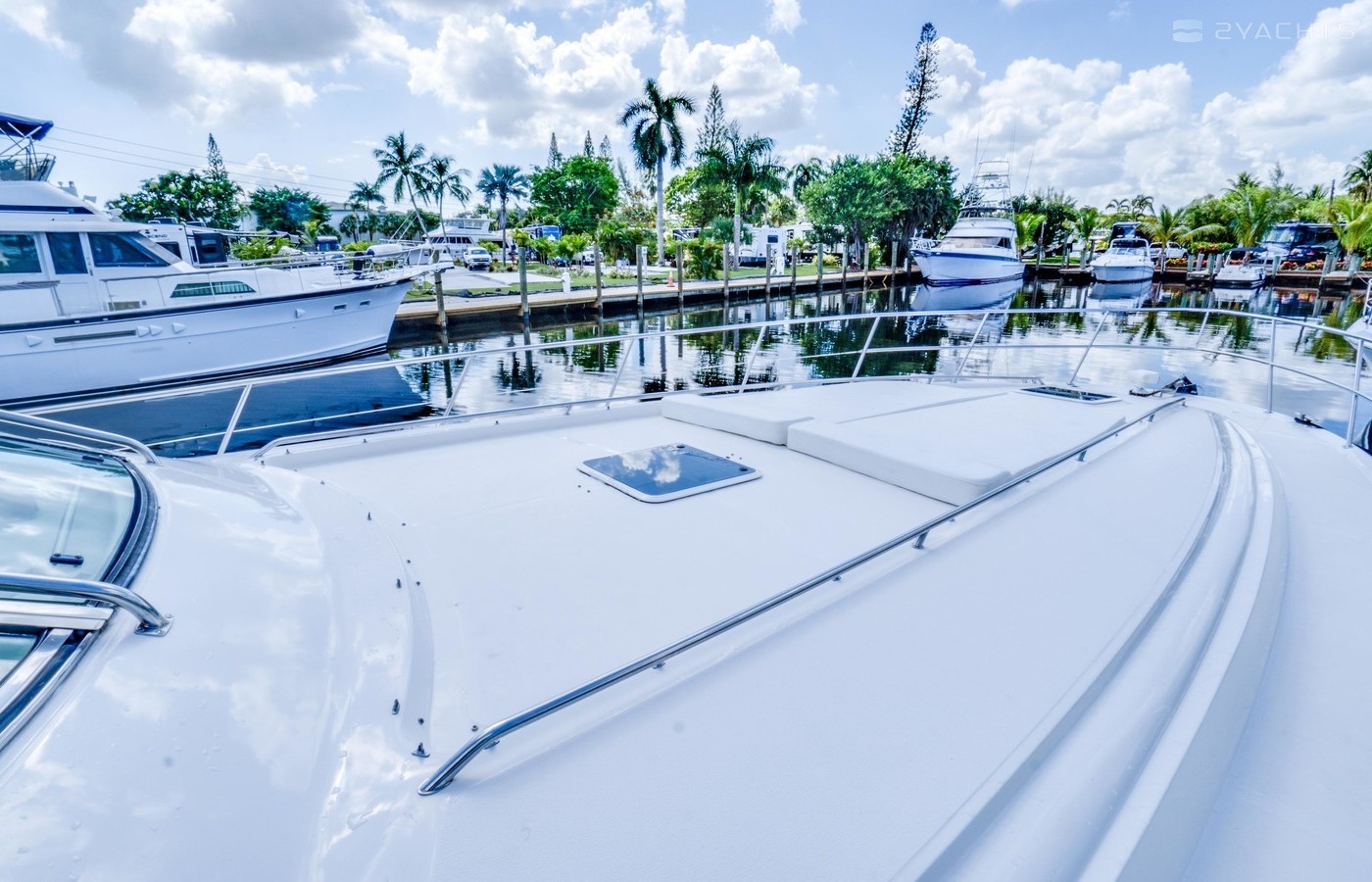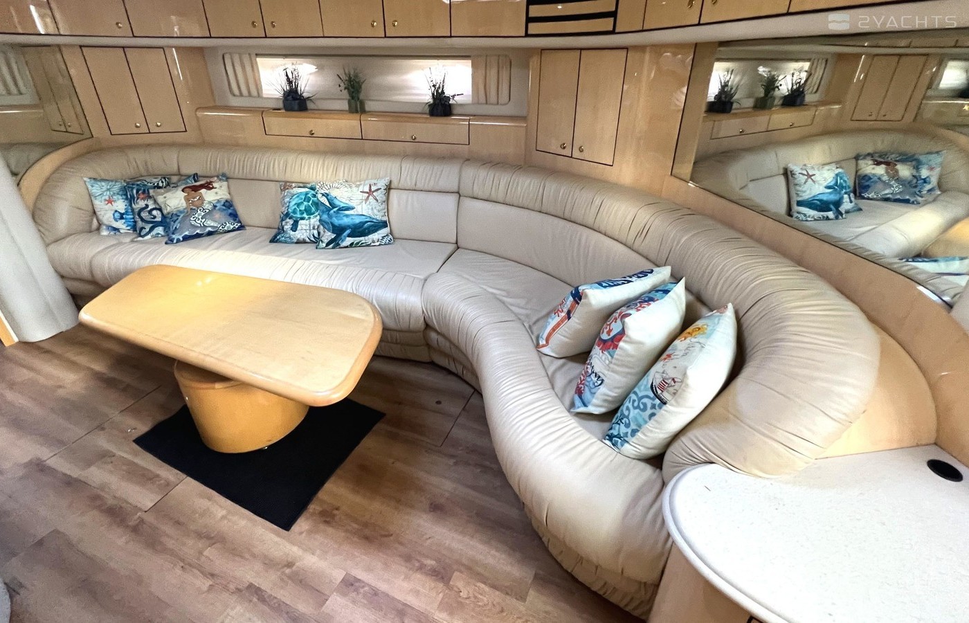 The Lower Cockpit is perfect for entertaining. It boast an electric sunpad, a large seating area, and a bar complete with refrigerator and icemaker.