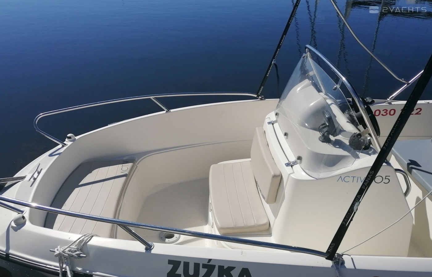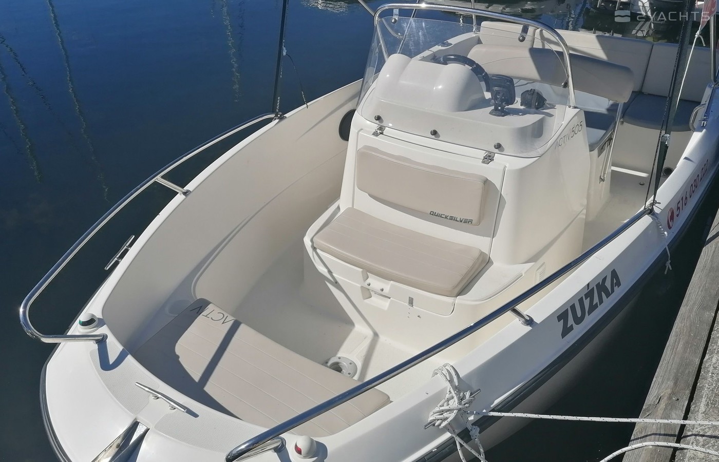 This 2019 Quicksilver 505 - Zuzka is suitable for 5 people. It is docked in Ekomarina Giżycko, Poland.