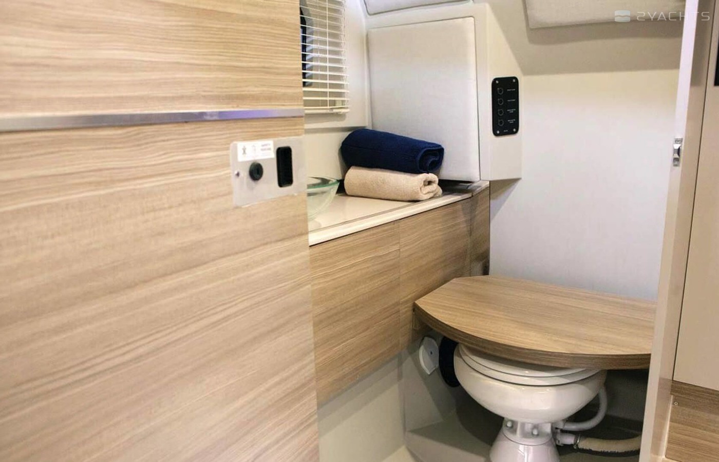 Boat equipment features bimini and outside gps plotter. It also boasts an an audio system, outside speakers and inside speakers. The fully-equipped galley includes a cooker and sink.