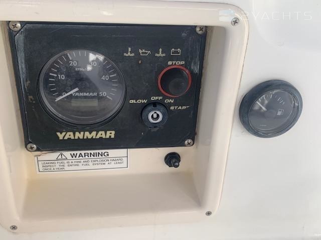 The interior has almost no wear and tear, it truly looks like it just left the factory. The well appointed galley has a gas stove, microwave and refrigerator. The spacious saloon offers a two settee's and a fold out table. is priced to sell. AC throughout the boat on shore power. The engine has very low hours and is clean . The battery bank is charged through a 120W solar panel mounted above the bimini when not on shore power.
