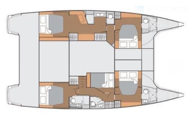 DEUTSCH - Diese Fountaine Pajot Saba 50 von 2019 bietet nicht nur innen und außen hervorragenden Komfort, sondern auch eine überzeugende Leistung dank ihre leichte und starke Konstruktion. Ihre Hauptmerkmale sind das hydraulischen Plattform um das Beiboot zu Wasser zu lassen, und ihre riesigen Sitz- und Lounge-Bereichen auf das Achterdeck, das Vorschiffsbereich, und auf dem festen Bimini-Dach. Das Steuercockpit, gut geschützt durch ein Bimini, bietet einen wunderschönen Blick und ist vom Achterdeck aus schnell erreichbar. Diese Katamaran ist sehr gut ausgestattet mit zwei 75 PS Volvo Dieselmotoren, Generator, Wassermacher, integrierten Sonnenkollektoren, Garmin Navigationspaket inklusive Radar, Beiboot mit Außenborder, hydraulische Gangway, Rettungsinsel, Unterwasserbeleuchtung, usw. Eine große Glasschiebetür trennt das Achterdeck vom Hauptsalon dieser Fountaine Pajot Saba 50. Das Interieur ist angenehm luftig und vor allem die L-förmige Pantry mit Mittelblock ist beneidenswert. Diese Saba ist eine Eigner-Version. Der Backbordrumpf verfügt über die Eignerkabine mit einem Inselbett, einem Schreibtisch, viel Schrankraum und einem eigenen Bad. Die Eignerkabine nimmt etwa drei Viertel des Backbordrumpfes ein. Der Rest des Backbordrumpfes ist reserviert für eine Gästekabine mit eigenem Bad. Der Steuerbordrumpf verfügt über zwei geräumige Gästekabinen mit eigenem Bad, und eine Crewkabine mittschiffs mit eigener Nasszelle. Und, um Ihre Aufenthalt an Bord noch komfortabler zu machen ist sie außerdem ausgestattet mit Klimaanlage, Heizung, Waschmaschine, Geschirrspüler, usw. Dieser Fahrtenkat bietet Alles.