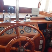 Her Large Flybridge offers an excellent vantage point for controlling the boat or simply relaxing with friends and family. She has a large Salon/Galley that is bright and airy and contains a second helm station for those inclement weather days.