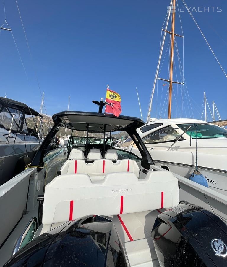 Saxdor Pollensa as the official Saxdor dealer for the area offers this 2022 Saxdor 320 GTO with Twin Mercury V6 CMS 225 (2x 225 hp) and a fantastic Targa arch with T Top. With only one season of light use, this is a great opportunity to buy a boat with low engine hours for much less than new, and with immediate availability.