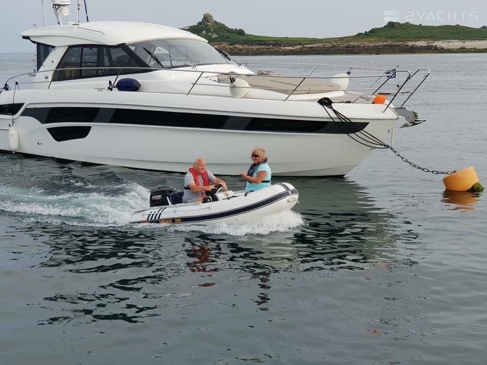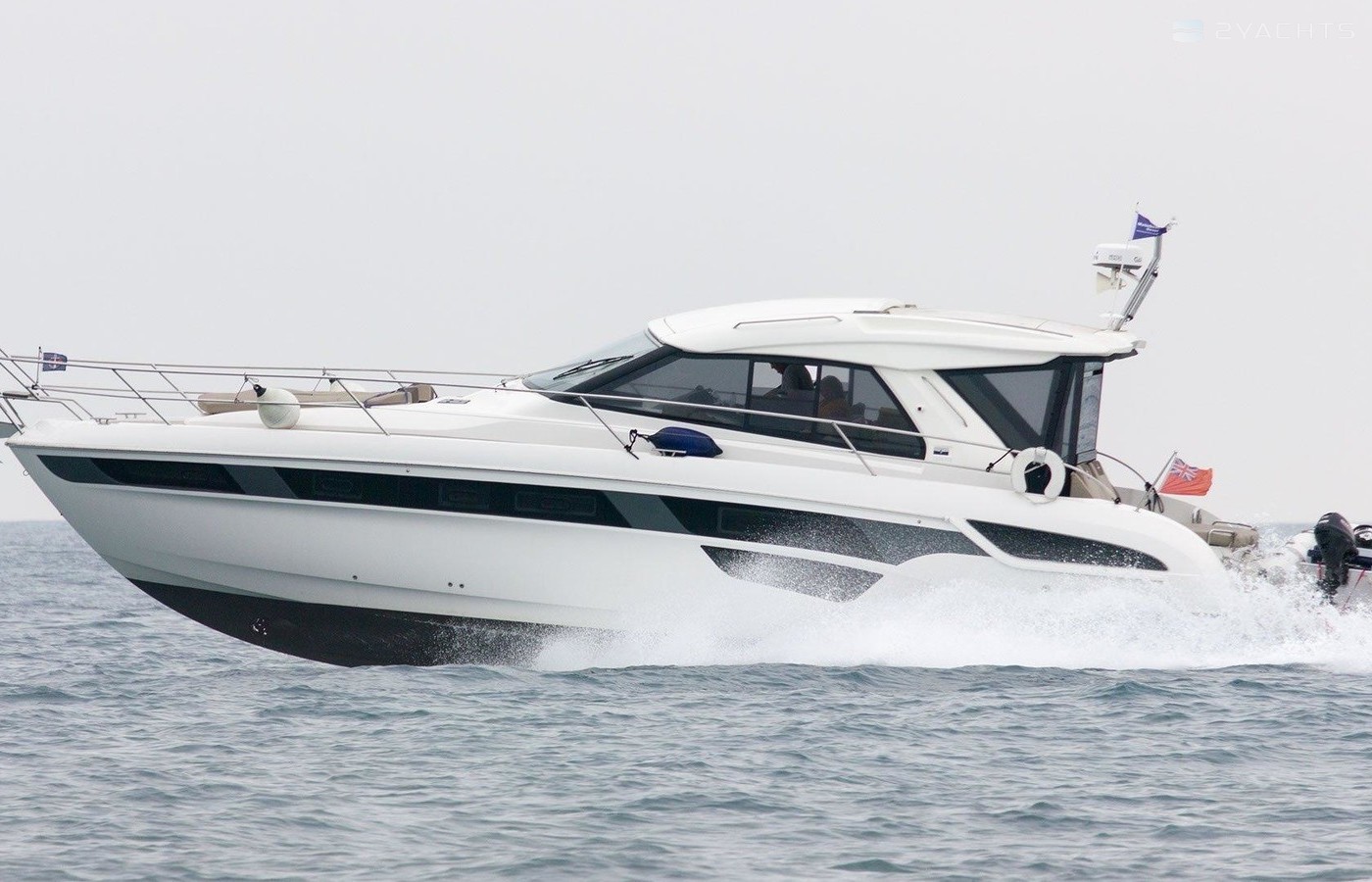 • LWL: 13.22m• Length on deck: 13.83m• Cabin headroom: 2.1m• Windlass — Electric• Part-One registered• Volvo Aquamatic joystick DPH control• 475 hours• Full service history• Sidepower bow thruster• Hydraulic swim platform with mounted 2017 Excel Virago 290 RIB with aluminium hull, helm console and Suzuki 15HP outboard with low hours