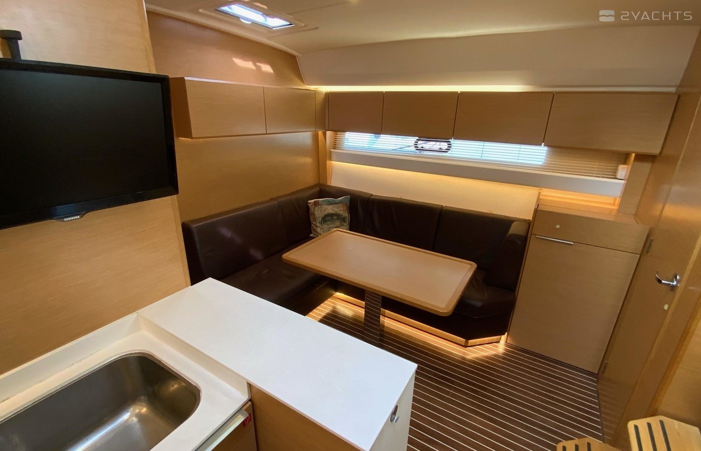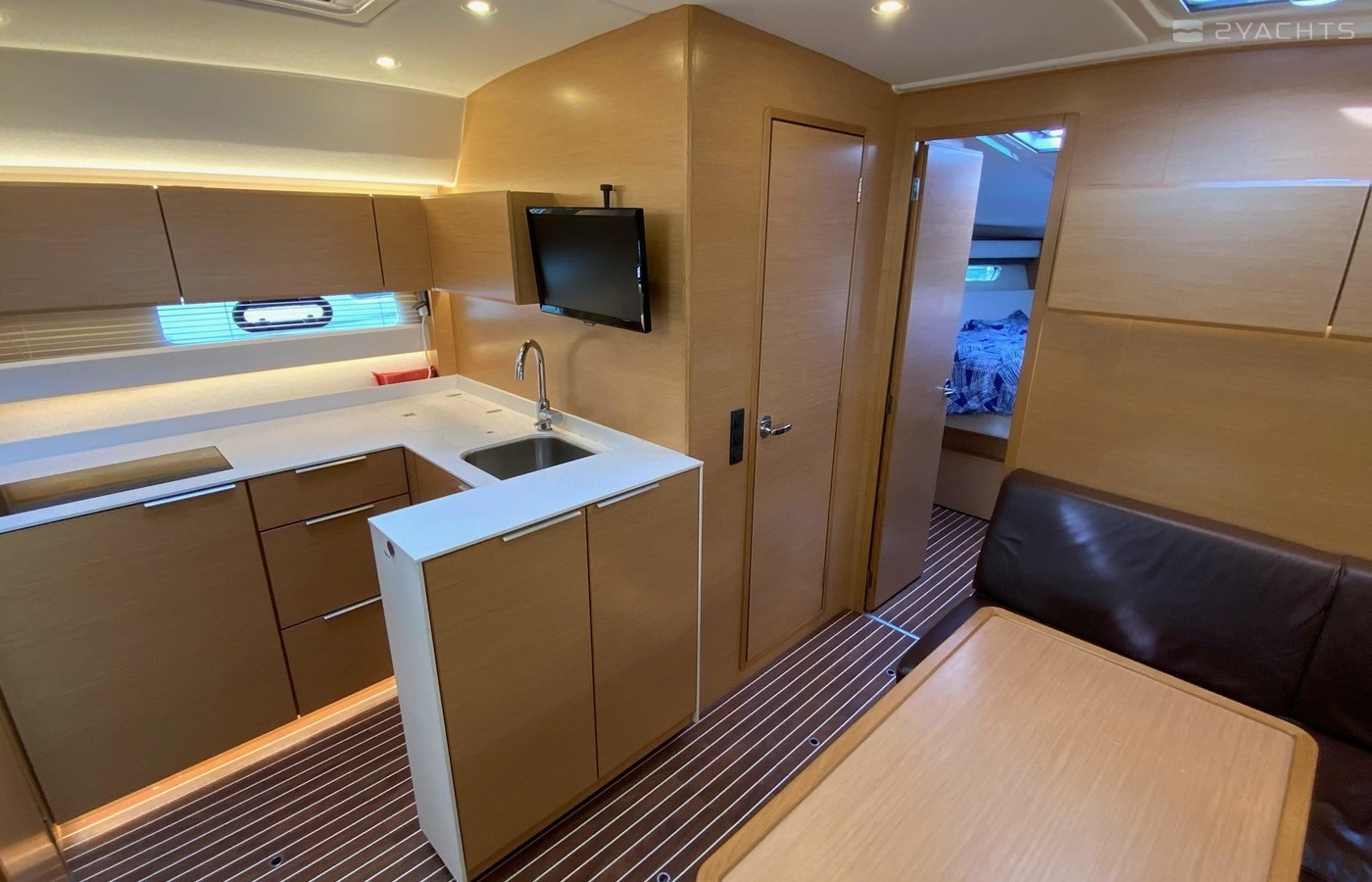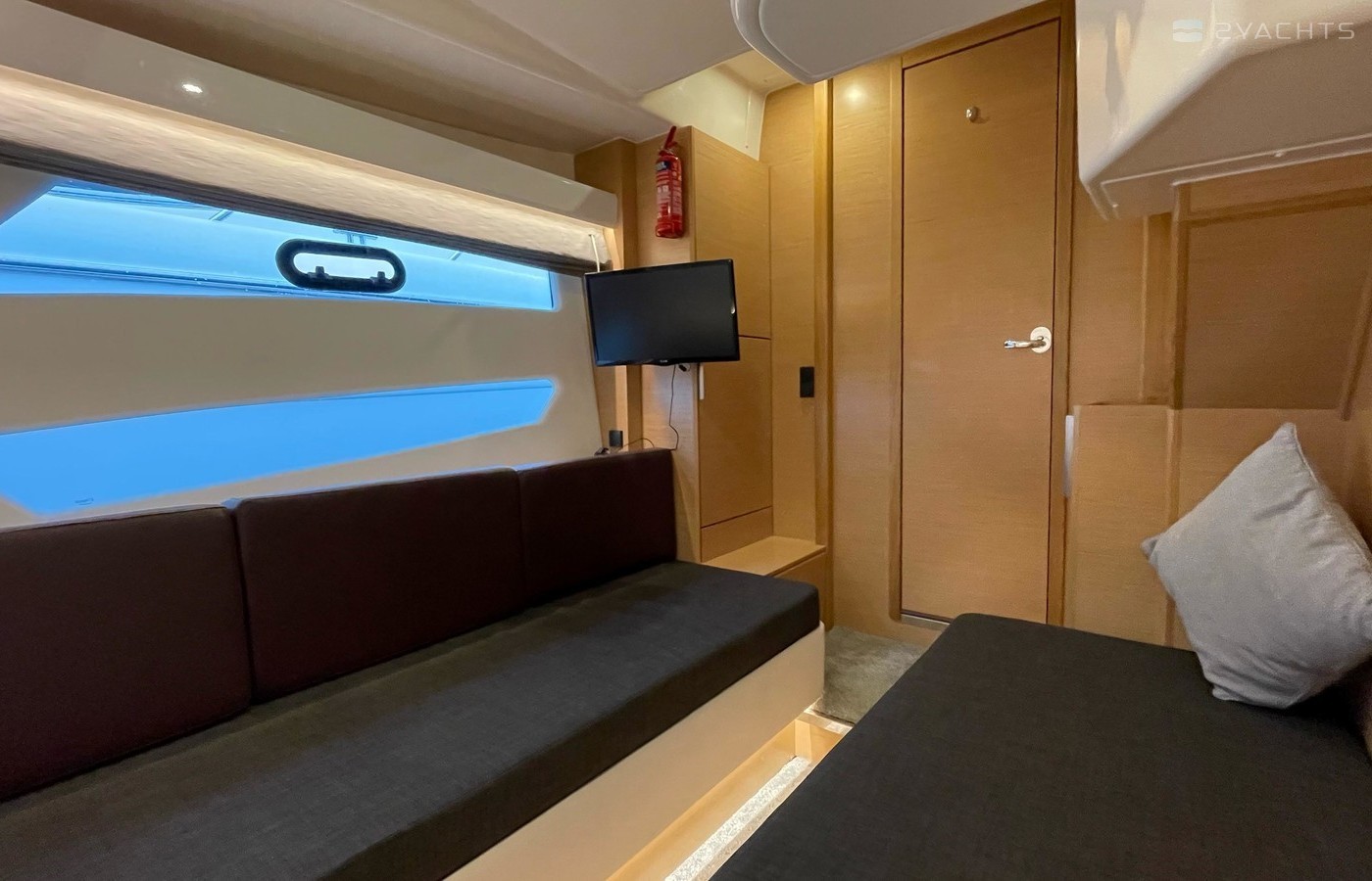 Cabins• Island berth in foreship• Two twin berths, convertible into a double berth• Ocean line flooringSaloon• Upgraded, dark brown leather upholstery• Oak interior woodwork• Reading lamp• LED roof lamps• Covered panel ceiling• Settee in saloon• Saloon table in solid wood• Blinds and fly screen on hatches• Blinds in head• Webasto heating systems• Ocean line flooringGalley• Ceramic stove top• Double stainless steel sink with cover• Twin hob• Free standing microwave in cupboard• Waeco 110ltr fridge• Waeco 30ltr fridge drawer• Waeco 40ltr chest freezerAnchor• Stainless steel delta anchor and chain• Electrical windlassStowage space• Stowage space under the aft sun pad is large enough for a folded RIB• Multiple lockers and wardrobes, including a large space under the forward cab-in bed• Locker and racks• Stowage space under sitting areaSystems• CE-fire extinguishing system• 6 fire extinguishers• Fusion audio system throughout the vessel, controls/speakers in the cockpit, saloon and main cabin• Subwoofer on rear wall of engine room• Mounted 22inch TV’s in saloon and cabin 2• 6.5kW Fisher Panda generator• Mastervolt InverterNavigation• Navigation lights (BSH certification)• Sumlog-sonar, Bidata• Acoustic signal system (BSH certification)• Garmin chart plotter / GPS map 7412• Garmin Autopilot GHP10• Garmin 4kW Radar• Garmin VHF 300i AIS