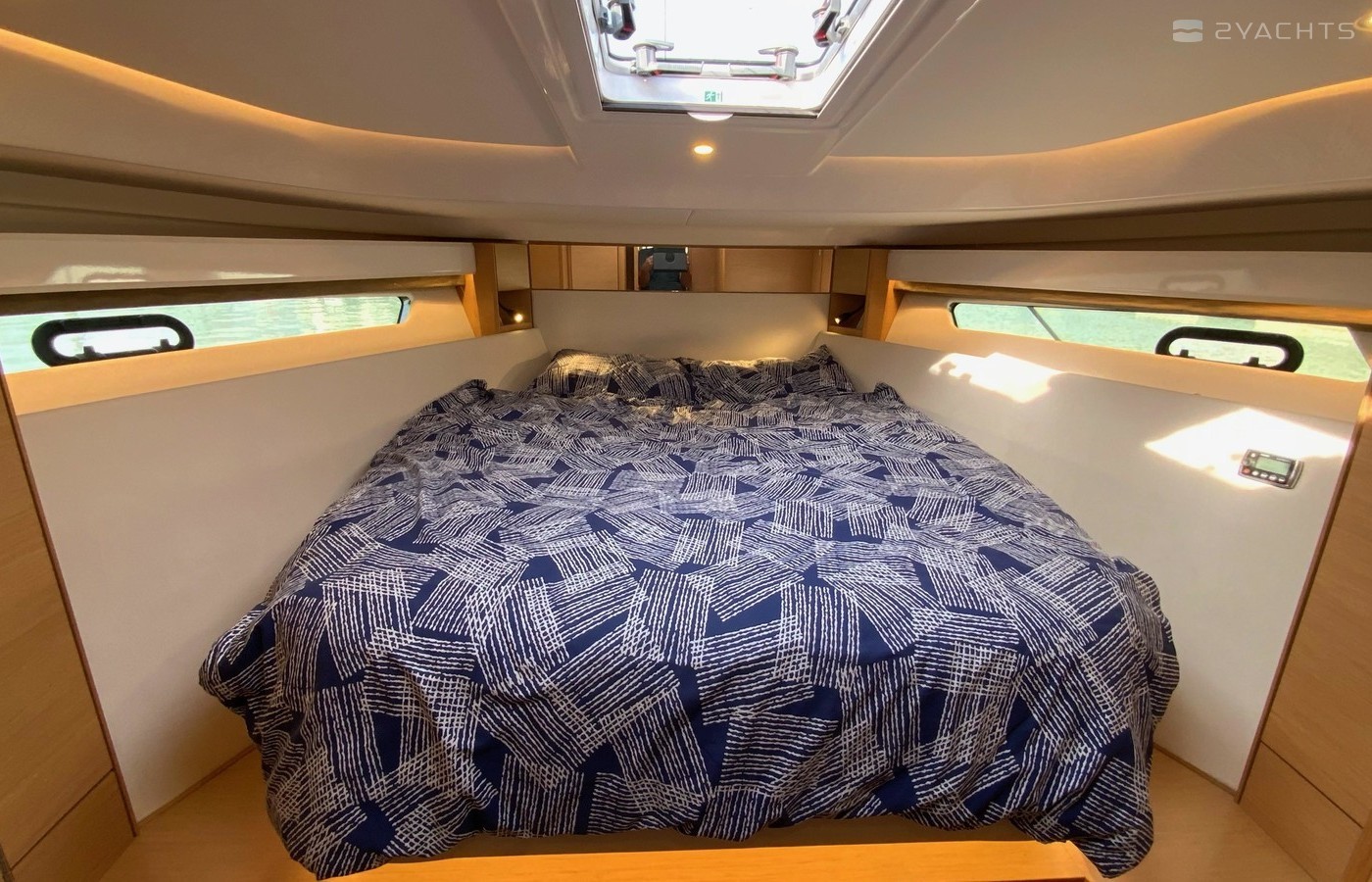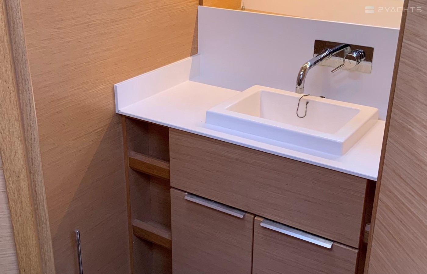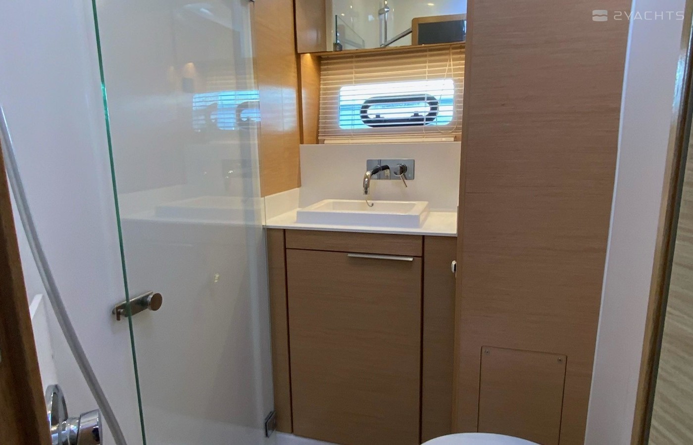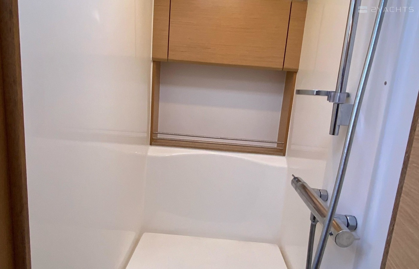 Accommodation• Number of berths: 6• Number of double berths: 3• Number of cabins: 3 - one king and the two mid cabins, which can be twin or king sizeExterior• White hull with grey stripe• 7 hull windows to open• Adjustable height steering wheel with sports design