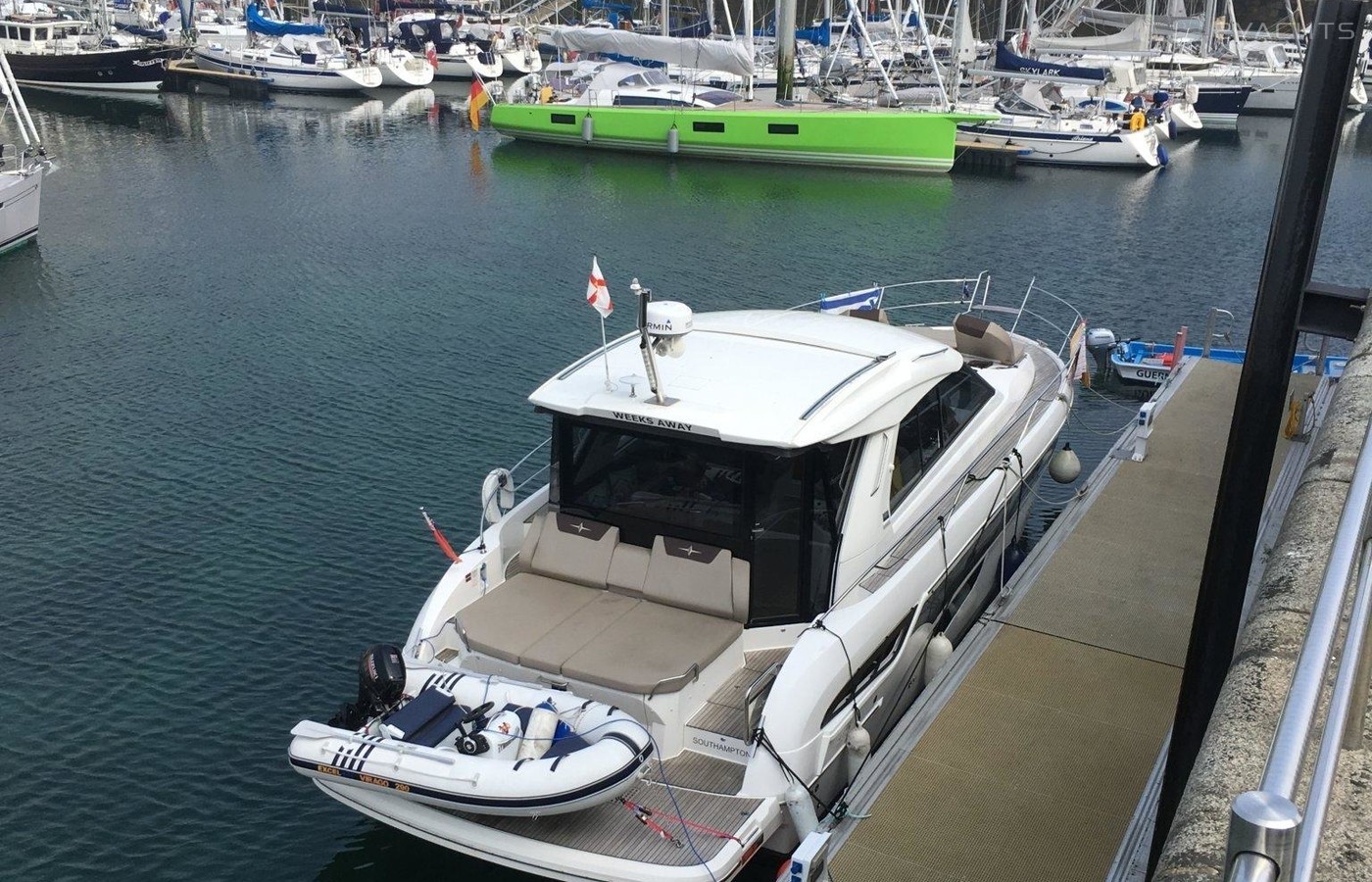 A very well-maintained boat which has been kept beautifully by experienced boaters. It has had good, careful use and regular servicing.This boat is thought to be the only one in the UK with a sliding electric roof and electric slide down rear window, giving you the best of both worlds - A fully enclosed cockpit, which can be turned into a very open cockpit.Another very useful feature is the hydraulic raise/lower swim platform that makes launching and retrieving the tender very easy.
