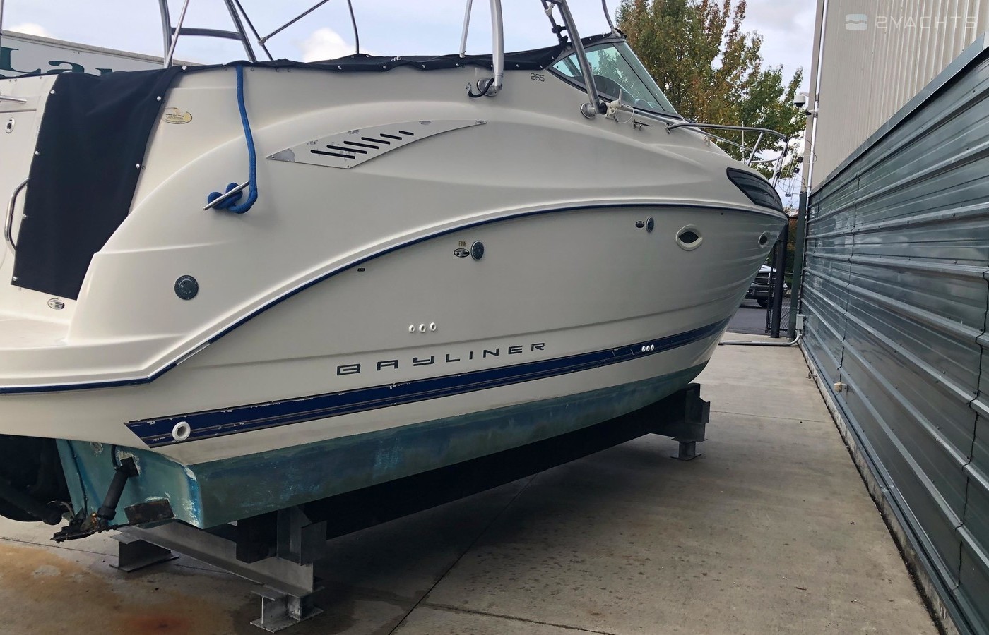 The Bayliner 265 offers an express-style design, an efficient interior layout, and a long list of features for improved comfort, convenience and safety. It provides wide-beam spaciousness in both the cabin and the cockpit, in combination with the affordability and fuel efficiency of the small block V-8 engine.