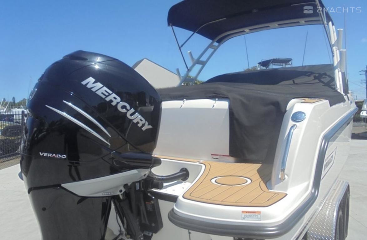 Engine: Mercury Verado Supercharged 4-Stroke Engine Make: MercuryEngine Hours: 242Trailer: Continental Aluminium Dual Axle trailerMax Speed: 50 MPHCovers: Full Covers and ClearsToilet: Fully Enclosed Plumbed Electric with Direct Discharge with SinkEntertainment: Fusion MS-RA205 Radio and SpeakersGround Tackle: Windlass Electric Anchor Winch with Remote - Lewmar AnchorBilge Pumps: YesFlares: YesElectrics: Battery Isolator Switch - Batteries x 2Electronics-Navigation: Garmin GPS Map 7412 XSV 12" - Navigation Lights - Speedo and RPM Digital Gauges - Garmin VHF 100i Marine radioDeck Gear: Cockpit Sink & Countretop with Cutting Board / Self Draining Deck / 8 x Rod Holders / Walk Thru Transom / Wash Down at Bow & Transom / Swim Platform / Folding Boarding Ladder / Water Sports Tower / Removable Table Forward & Aft / Fresh Water Shower / 12 x Cup Holders / Small Yeti Esky / Fold Out Transom Seat / Under Gunnel Storage / Stainless Steering Wheel
