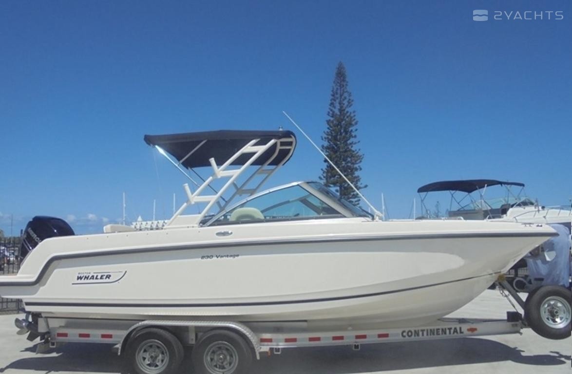 This very well presented and feature packed 2015 Boston Whaler 230 Vantage has been maintained and kept in immaculate condition. From summer boating, fishing and water sports the 230 Vantage has you covered. Comfortable spacious seating through out, rod holders for fishing and a water sports tower. All accessories are jam-packed with a Garmin 12" GPS map 7412 XSV sounder, plumbed electric direct discharge toilet on passenger side, windlass electric anchor with remote and loads more. The quality and condition is second to none and it shows. Powered by an impressive 300hp supercharge Mercury 4 stroke Verado engine. All sitting on a continental aluminium dual axle trailer ready for launch.Boston Whaler's 230 Vantage delivers all the power, safety, comfort and luxury appointments you expect from a Whaler - in a revolutionary dual console layout. Invite your whole family and all your friends to ride onboard this game-changing boat. Every one of them will leave happy.The 230 Vantage's incredible design features a spacious bow area with cushions, backrests and cup holders, and a fold-out stern seat with backrest provides comfort for additional crew members. The innovative convertible port lounge seat with storage faces either forward or backward, so you can face your guests or watch the watersports behind the boat.Hardcore anglers will appreciate the utility center in the cockpit, which includes a sink with drain, a cutting board and a 36-quart cooler. An optional fishing package adds a 14-gallon livewell, a fishing station, a raw-water washdown and transom-mounted rod holders. Cruise confidently offshore for an extended fishing run, thanks to an accessible head featuring a molded sink with drain and lockable entry door.For those who put the ski in fish and ski, the 230 Vantage has it all. A watersports tower with navigation light and tow bit, plus the power of a 300-hp Mercury FourStroke Verado engine ensure thrilling rounds behind the rope. A standard Fusion stereo system pumps out music to ski to, or an optional premium audio package (amp, premium speakers, subwoofer) will really get things bumping.