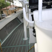 Aft under water lights, Porta jack plate with paddles at both stations. Consoles at upper and lower stations. Multi rod holders. Custom sea deck with Morgan insignias. 2 bait wells. 3 in floor fish boxes. Upper station with in-dash Simrad. Front LED spreader lights. Full acces to all batteries and wiring through front of console. Powder coated tower and tubing. Custom Aquamist paint And under matching hard top finish. Minnekota Terrova trolling motor with i-pilot. Custom stereo installation with guaranteed quality sound at all speeds. Twin power poles.