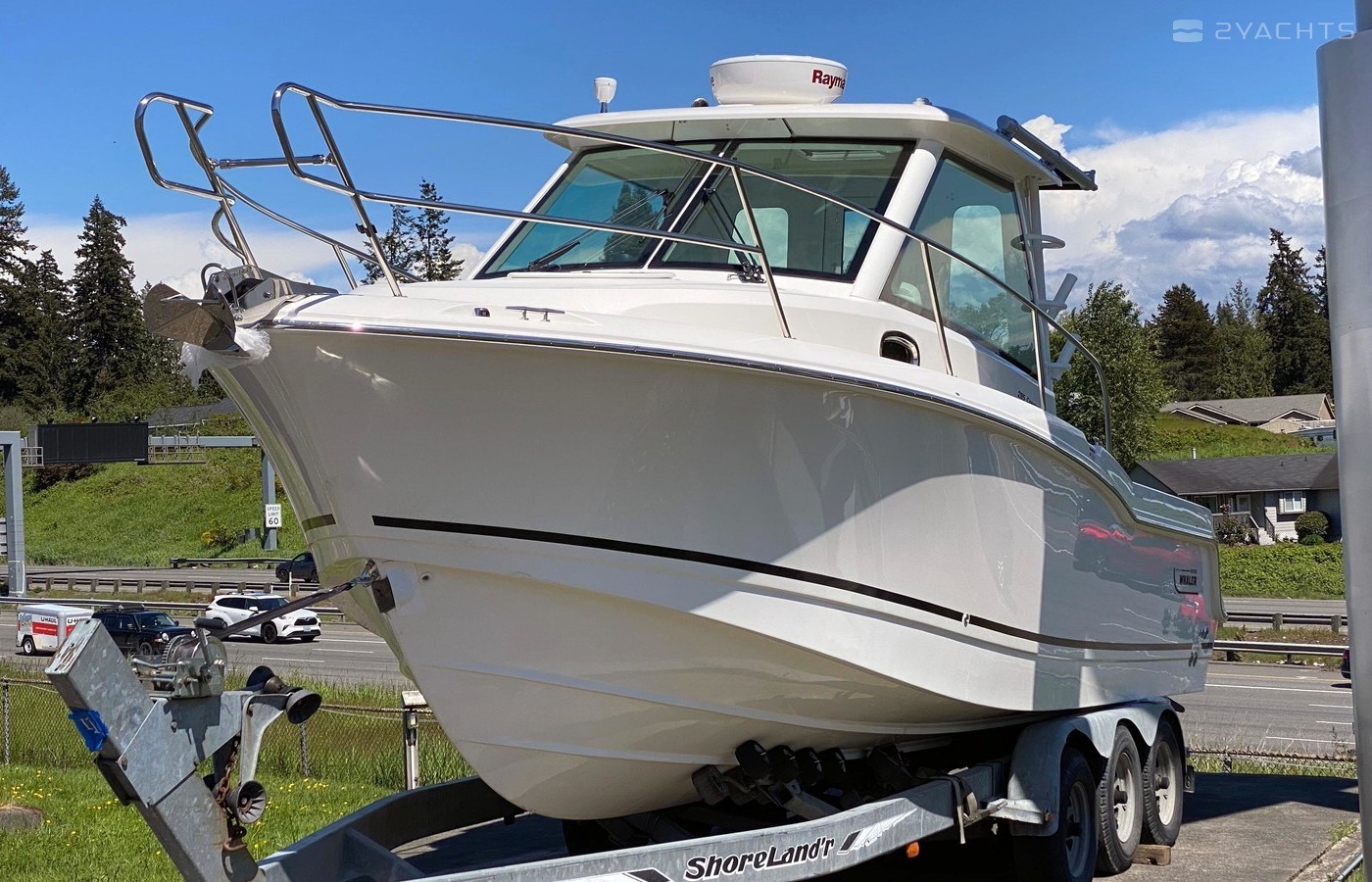 There’s no stopping the 285 Conquest® Pilothouse. A Union Marine purchase making it's way back home, the 285 makes sure you are safe and secure no matter the weather, built for durability and versatility. Below deck, the cabin offers all the features of the open 285 Conquest—meaning it’s as well suited for leisurely cruises with friends as it is for serious offshore fishing excursions. With leading performance, power, handling and design, the 285 Conquest Pilothouse is a force you’ll want to reckon with.