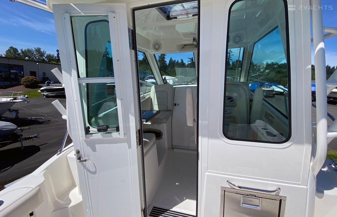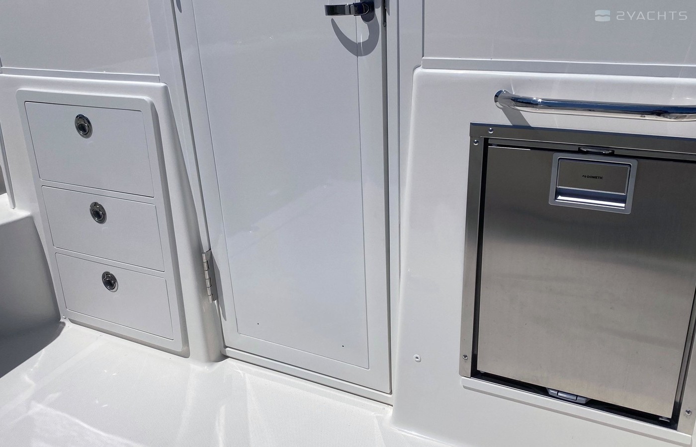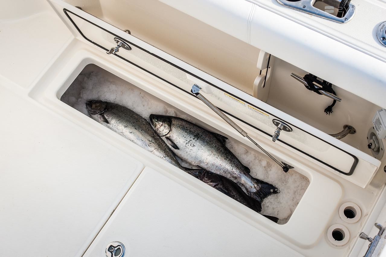 WHITE HULL BLACK GRAPHICS BLACK CANVAS - OPTIONAL DUAL JOYSTICK PLT 250 V8 AMS MERC WHITE STAINLESS STEEL ANCHOR ANCHOR WINDLASS CHAIN SPLIT BOW RAIL WHITE RUBRAIL WITH STAINLESS STEEL INSERT CRUISING PACKAGE AIR CONDITIONING FOLD DOWN TROLLING SEAT - PORT COCKPIT FOLDOUT BENCH SEAT - STBD COCKPIT TABLE COCKPIT REFRIGERATOR 12V DC RECEPTACLE (ELECT.REELS/DOWNRIGGERS) SUNSHADE GENERATOR (120V) PREMIUM PACKAGE SATELLITE RADIO VHF RADIO (RAYMARINE) REALVISION 3D SONAR-DIRECT CONNECT 16" RAYMARINE AXIOM XL ELECTRONICS/NAV PKG RADOME 4KW RADAR HD DIGITAL CABIN COMFORT PACKAGE NMMA DUAL ENGINE CHARGE GREATER THAN 50HP GROW BOATING FEE, TWIN OUTBOARD 200HP & UP