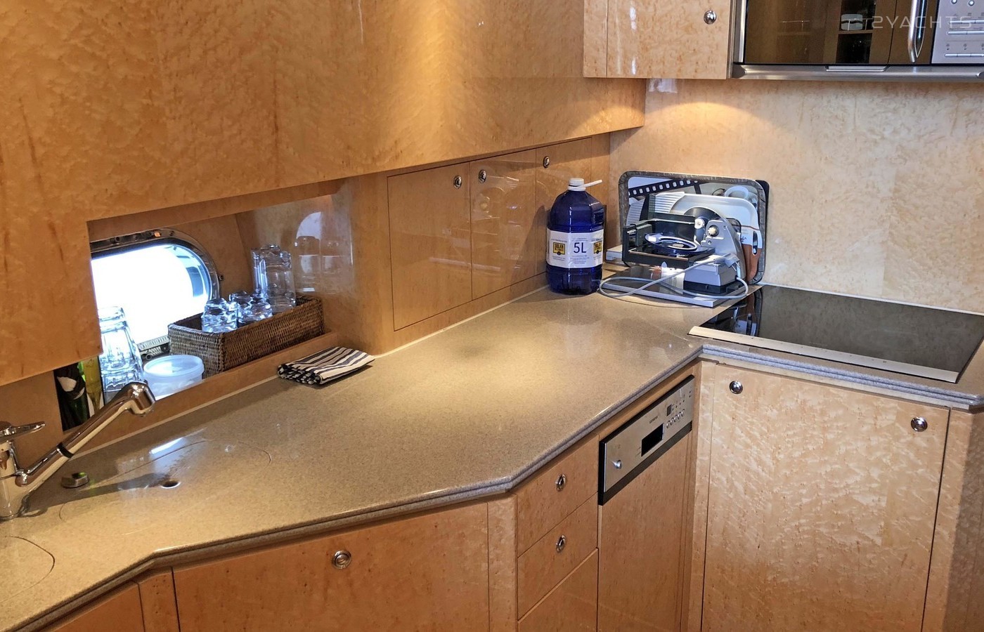 Diese E54 verfügt über zwei Ensuite-Kabinen und bietet ein helles und gemütliches Interieur, das in einem sehr guten Zustand gepflegt ist. Ausgestattet mit zwei MAN-Dieselmotoren mit 700 PS, leistungsstarken hydraulischen Bug- und Heckstrahlern und Klimaanlage.