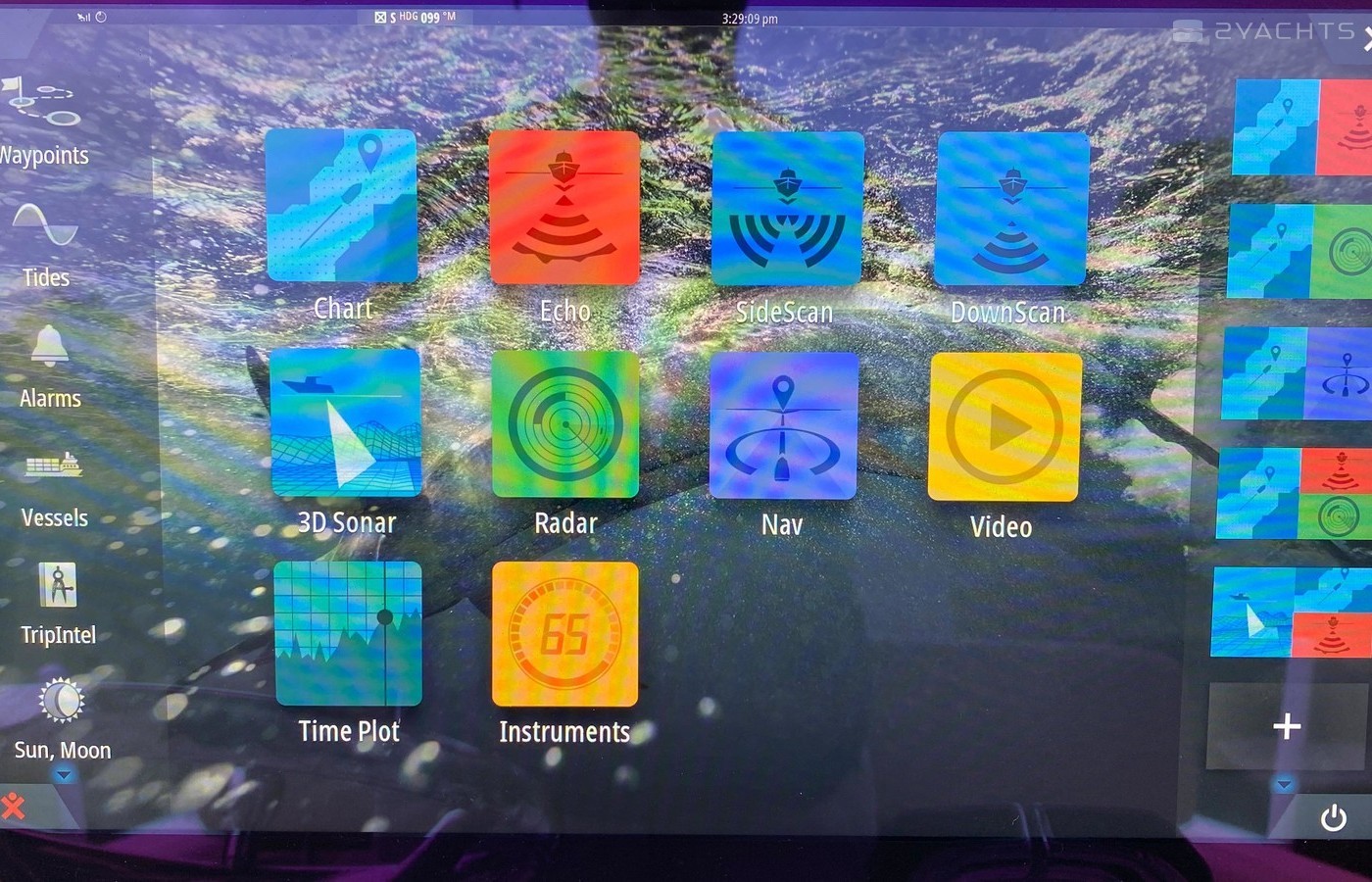 All Garmin, 24 mile radar, 3d side scan, Jensen bluetooth radio.
