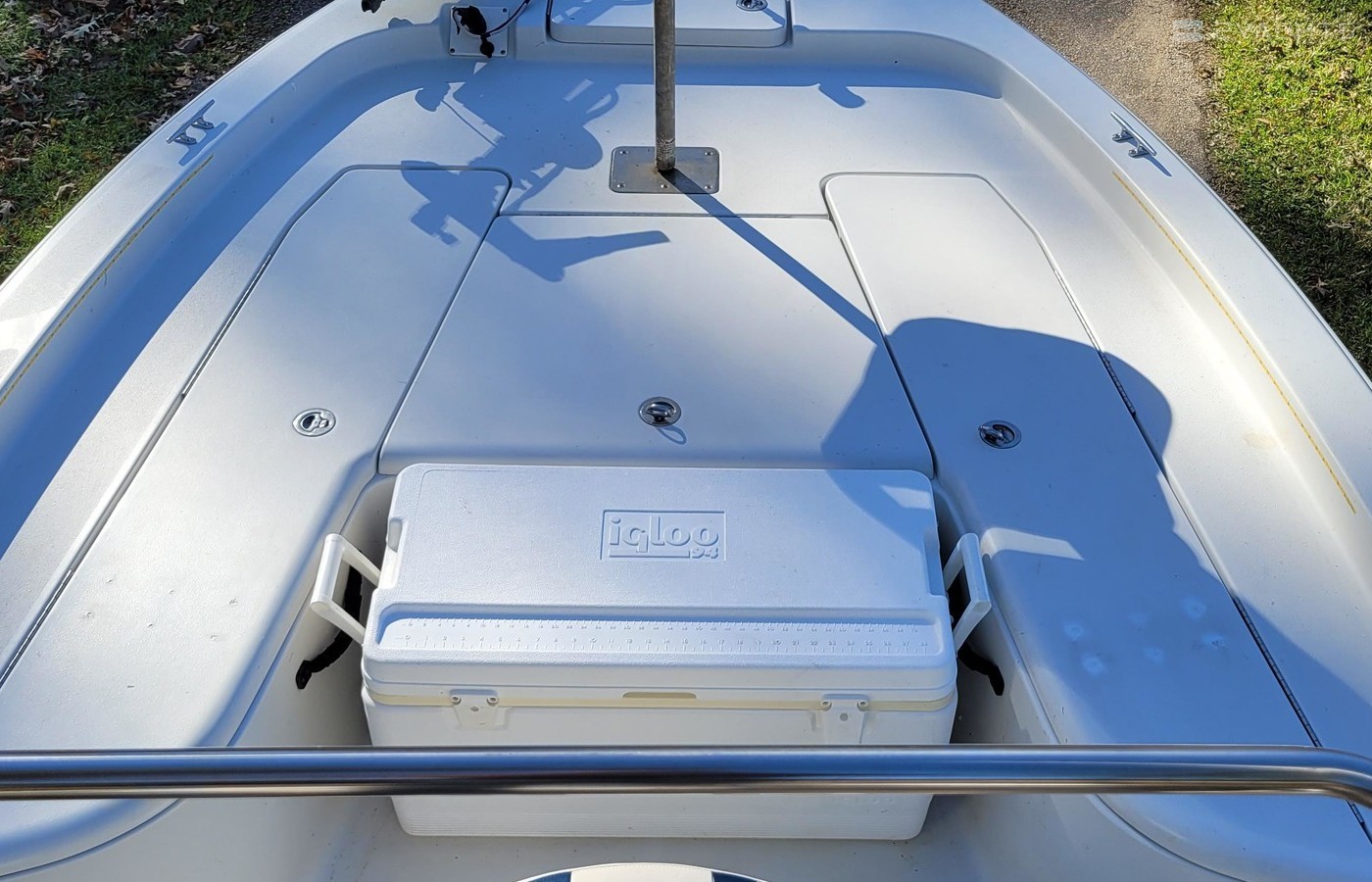 2 igloo ice chest included. One fore, one aft under captain's seat. Three storage compartments in fore and three in the aft. Live bait well in fore. Fire extinguisher charged. Fish net. First aid equipment. Aft light pole. Boarding ladder. Flip down foot rest for captain.