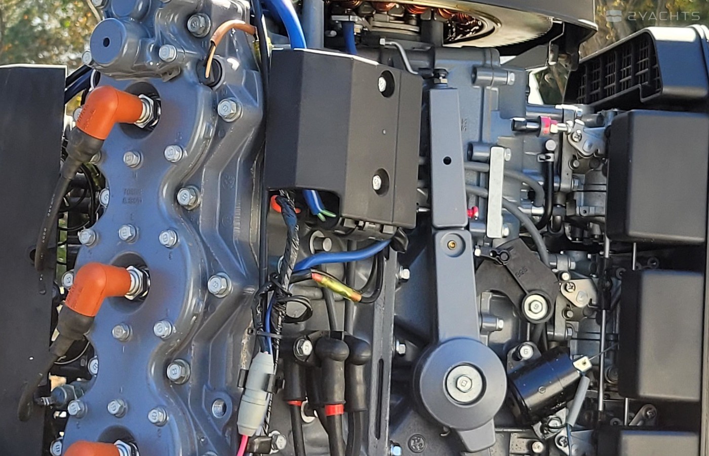 Ship to shore, cobra. Radio and speakers, Dual. Lowerance Elite 5. Yamaha motor V6, 2 stroke 225 horse power. Minn Kota riptide (80 lbs thrust)