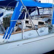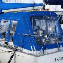Bimini – Section of cockpit tent over pedestal can remain rigged with rest of tent removed, covering full cockpit