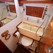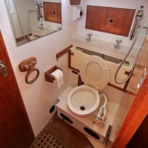 Manual marine toilet located outboard to port.